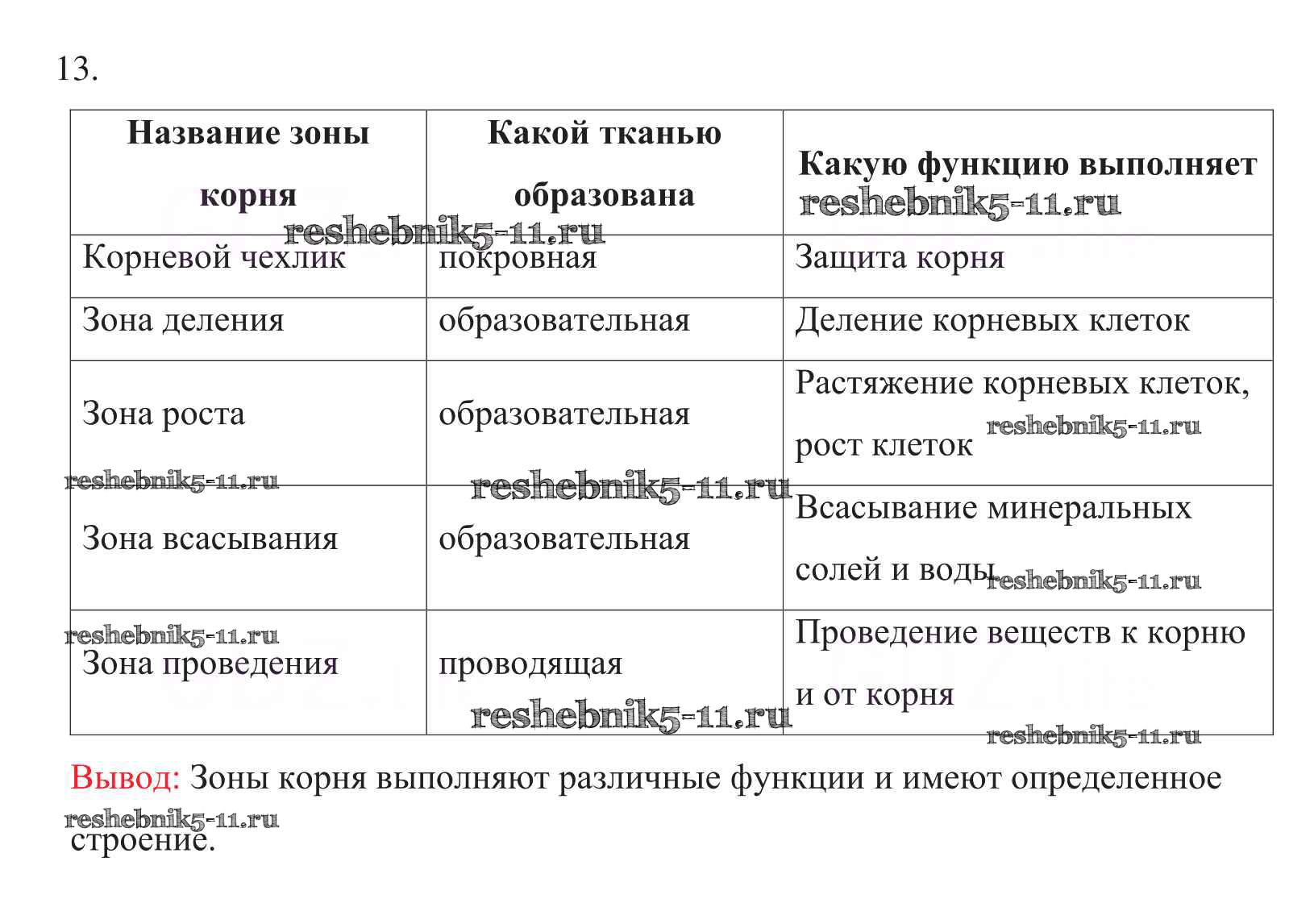 Готовая домашняя работа с ответами по Биологии за 6 класс Пасечник Рабочая тетрадь УМК Дрофа 2017 ФГОС - Упражнения 13
