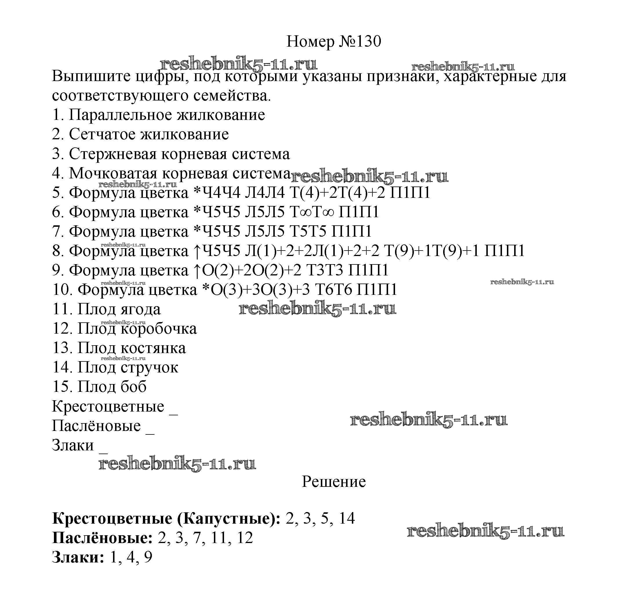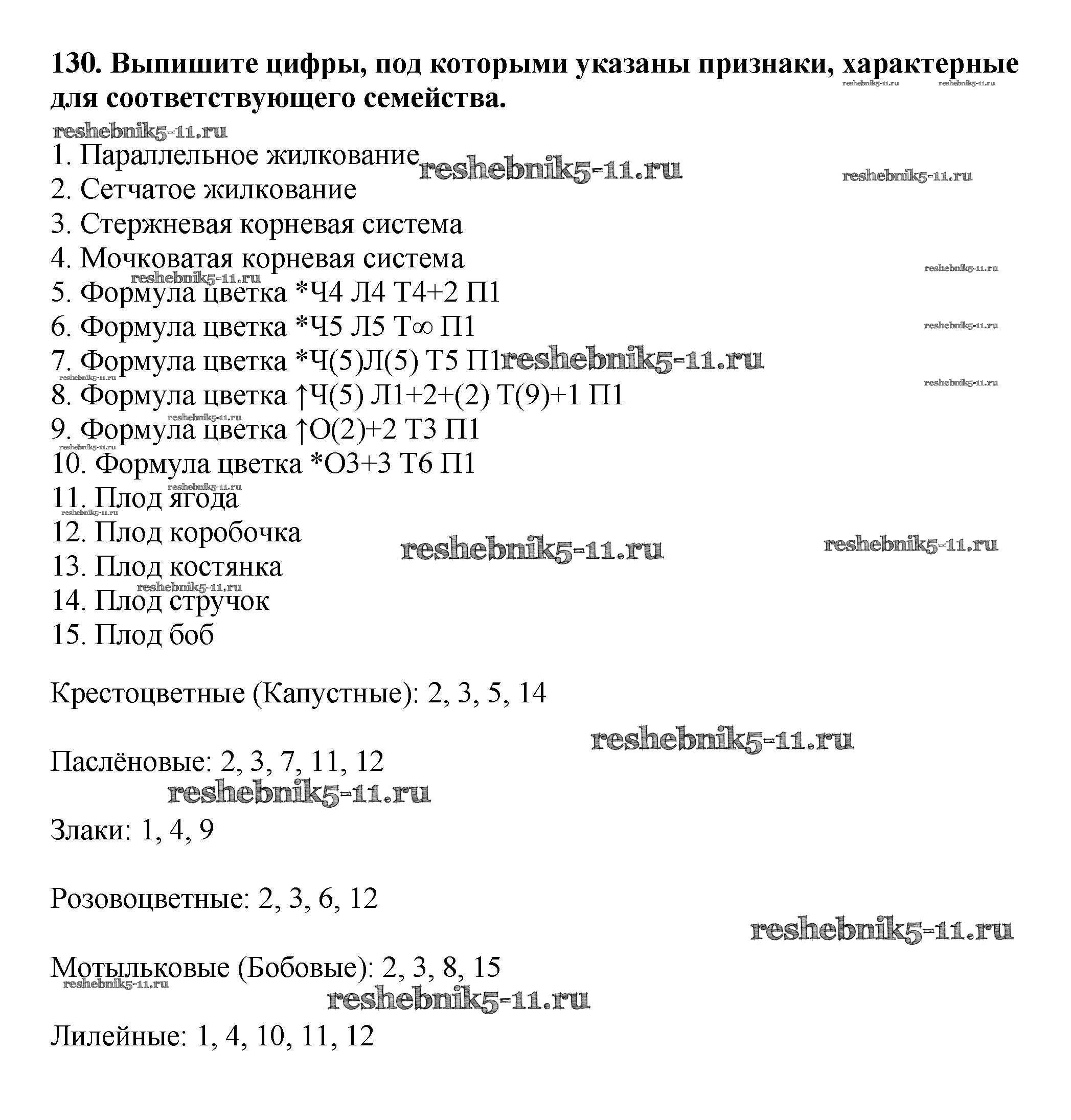 Готовая домашняя работа с ответами по Биологии за 6 класс Пасечник Рабочая тетрадь УМК Дрофа 2017 ФГОС - Упражнения 130