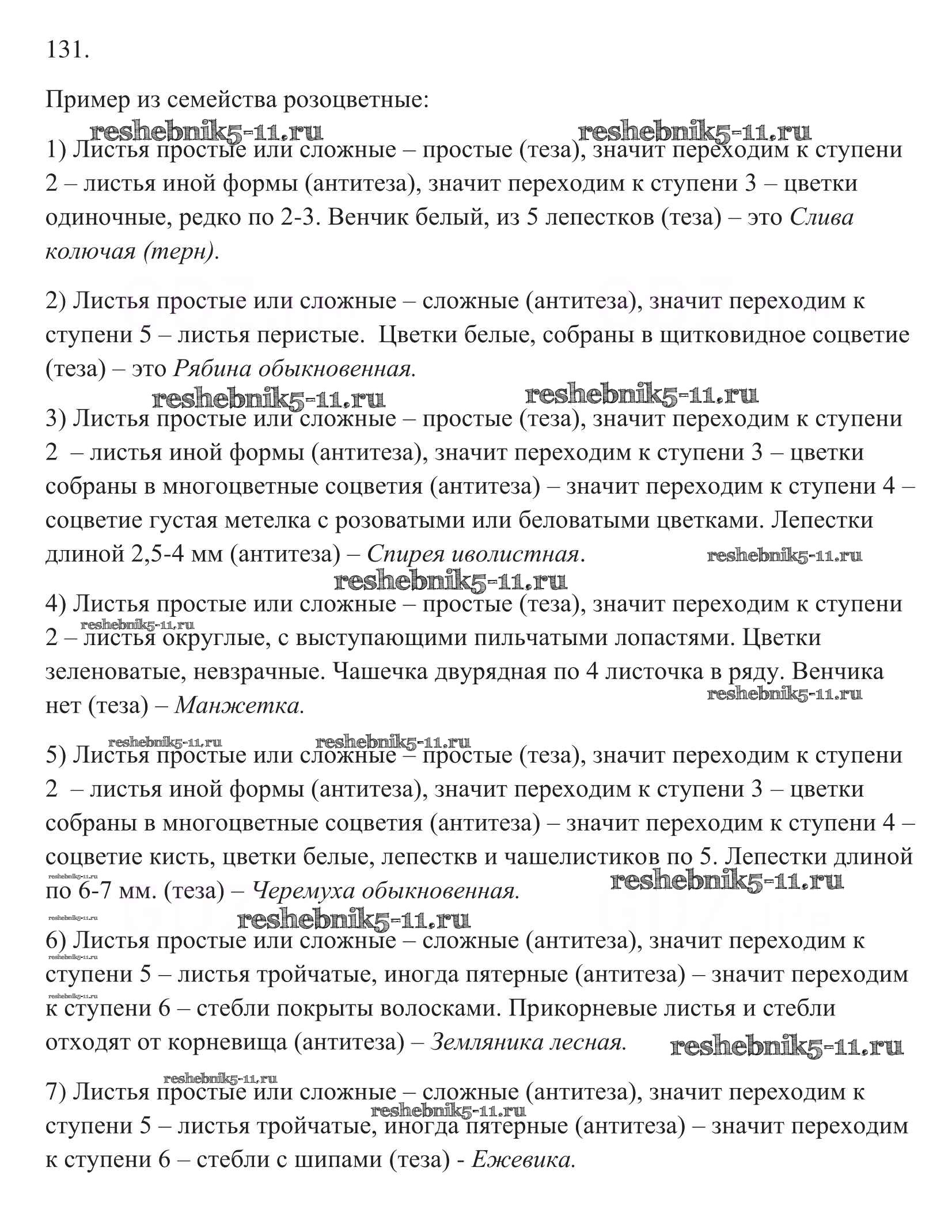 Готовая домашняя работа с ответами по Биологии за 6 класс Пасечник Рабочая тетрадь УМК Дрофа 2017 ФГОС - Упражнения 131