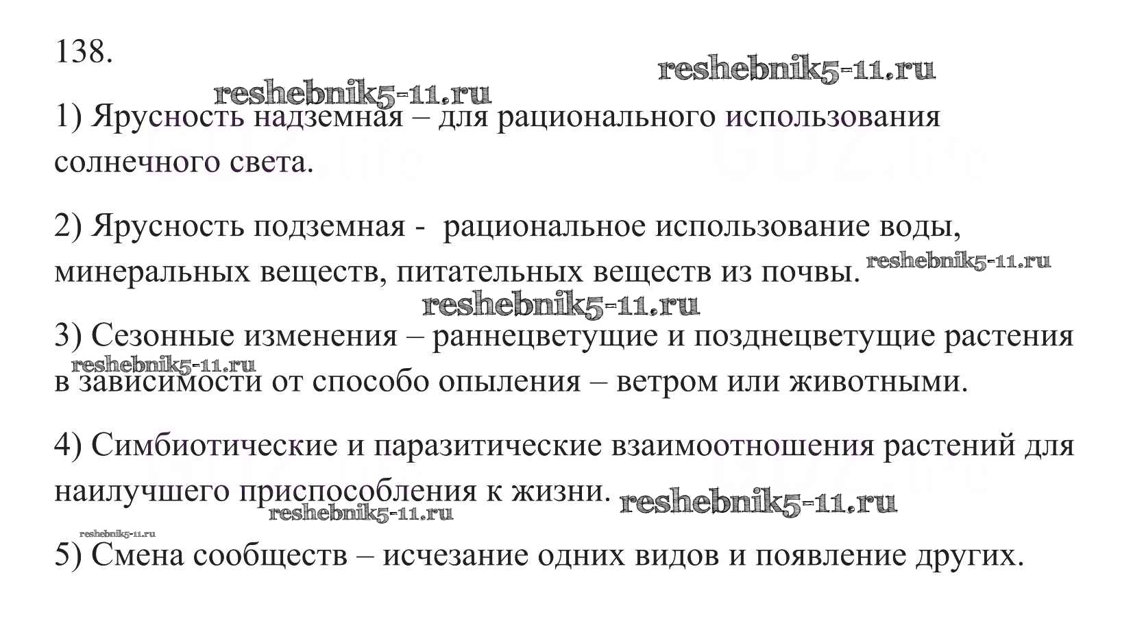Готовая домашняя работа с ответами по Биологии за 6 класс Пасечник Рабочая тетрадь УМК Дрофа 2017 ФГОС - Упражнения 138