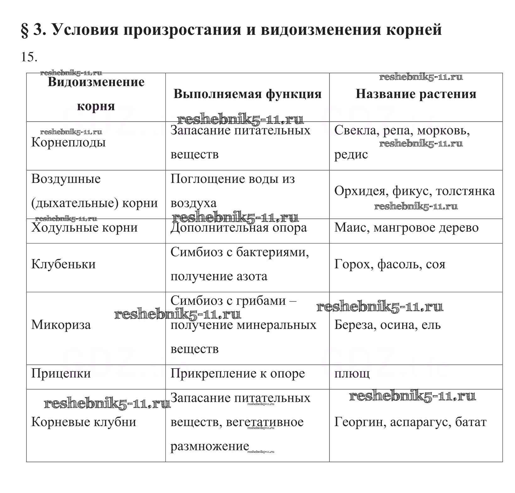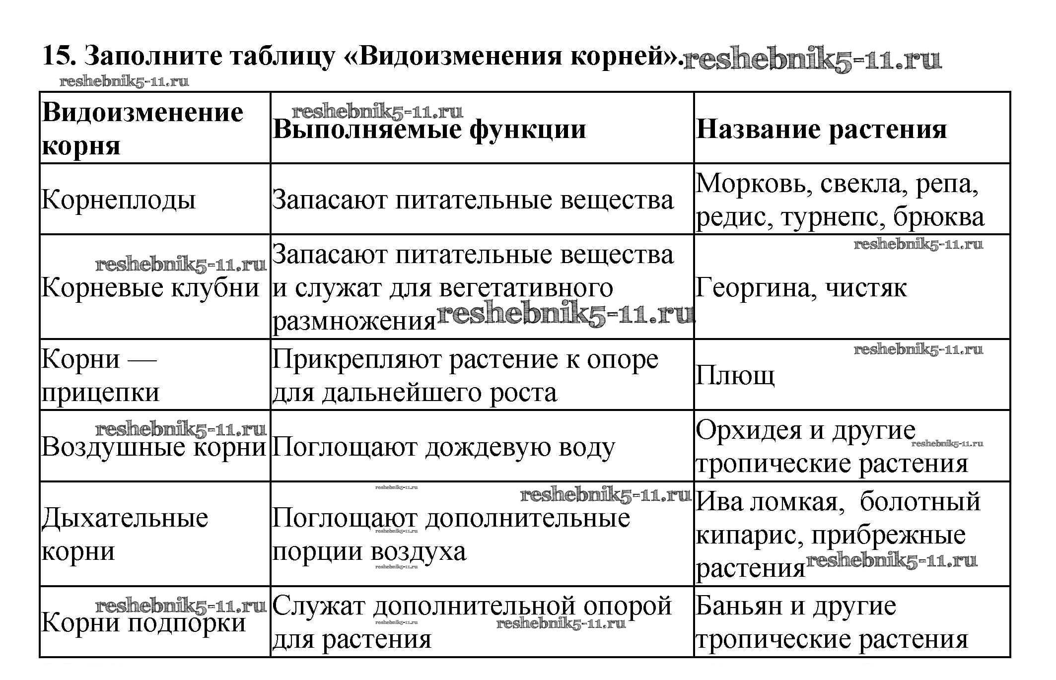 Биология за 6 класс Пасечник Рабочая тетрадь УМК Дрофа упражнение 15