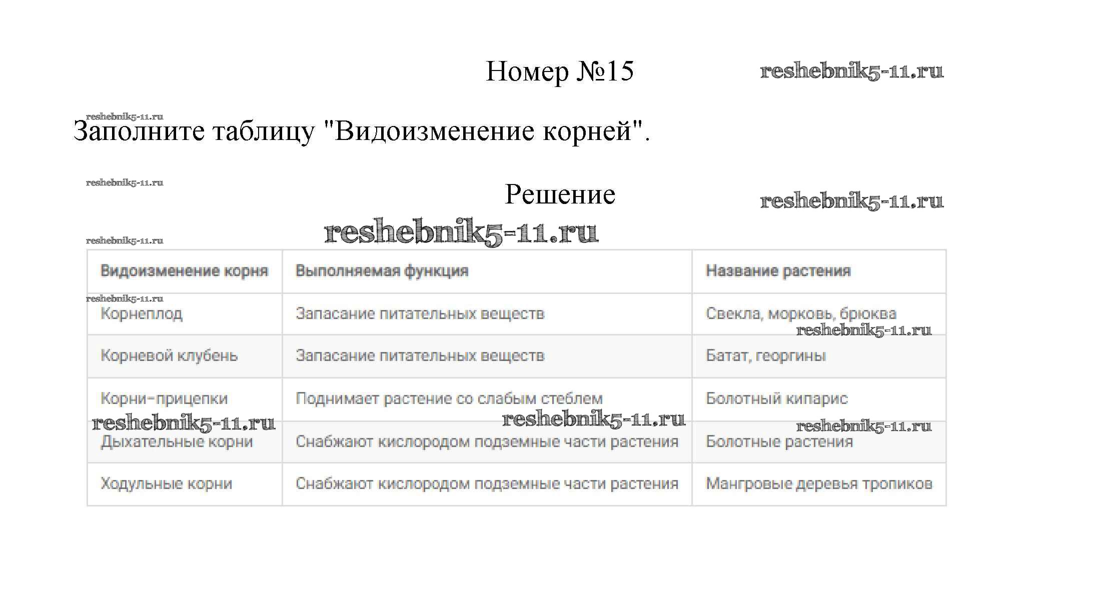 Готовая домашняя работа с ответами по Биологии за 6 класс Пасечник Рабочая тетрадь УМК Дрофа 2017 ФГОС - Упражнения 15