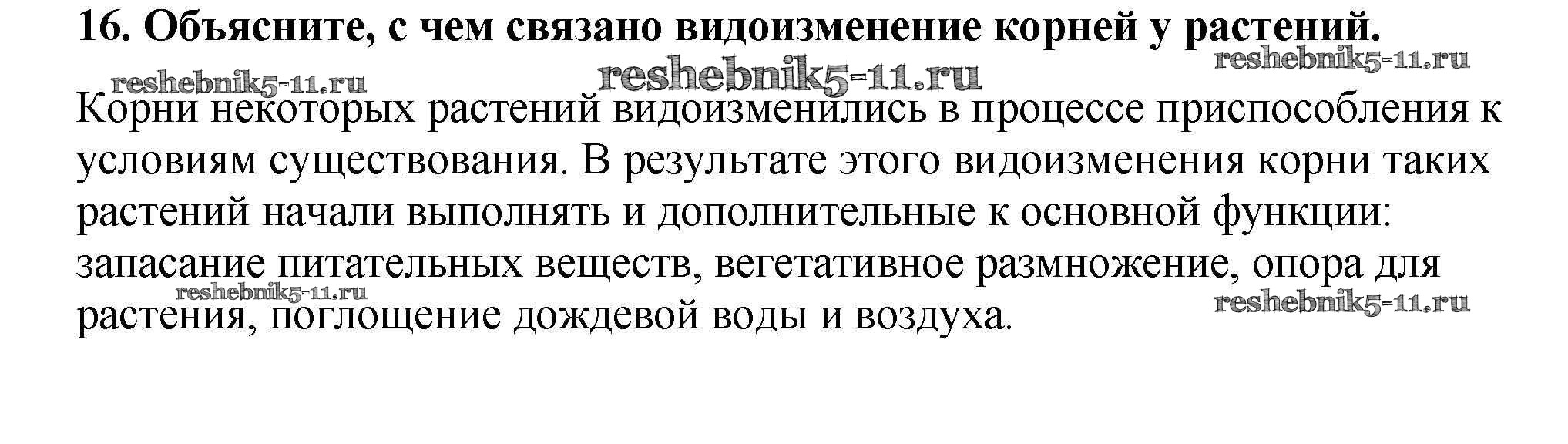 Готовая домашняя работа с ответами по Биологии за 6 класс Пасечник Рабочая тетрадь УМК Дрофа 2017 ФГОС - Упражнения 16