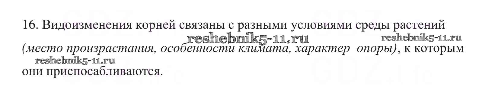 Биология за 6 класс Пасечник Рабочая тетрадь УМК Дрофа упражнение 16