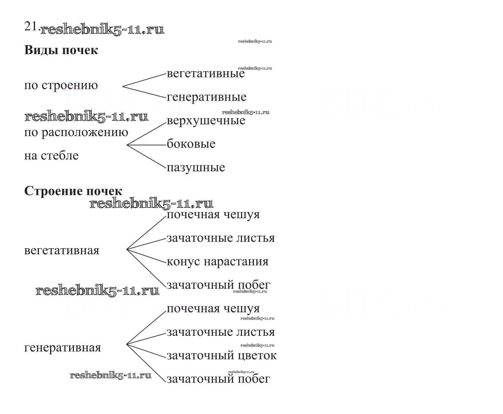 Готовая домашняя работа с ответами по Биологии за 6 класс Пасечник Рабочая тетрадь УМК Дрофа 2017 ФГОС - Упражнения 21