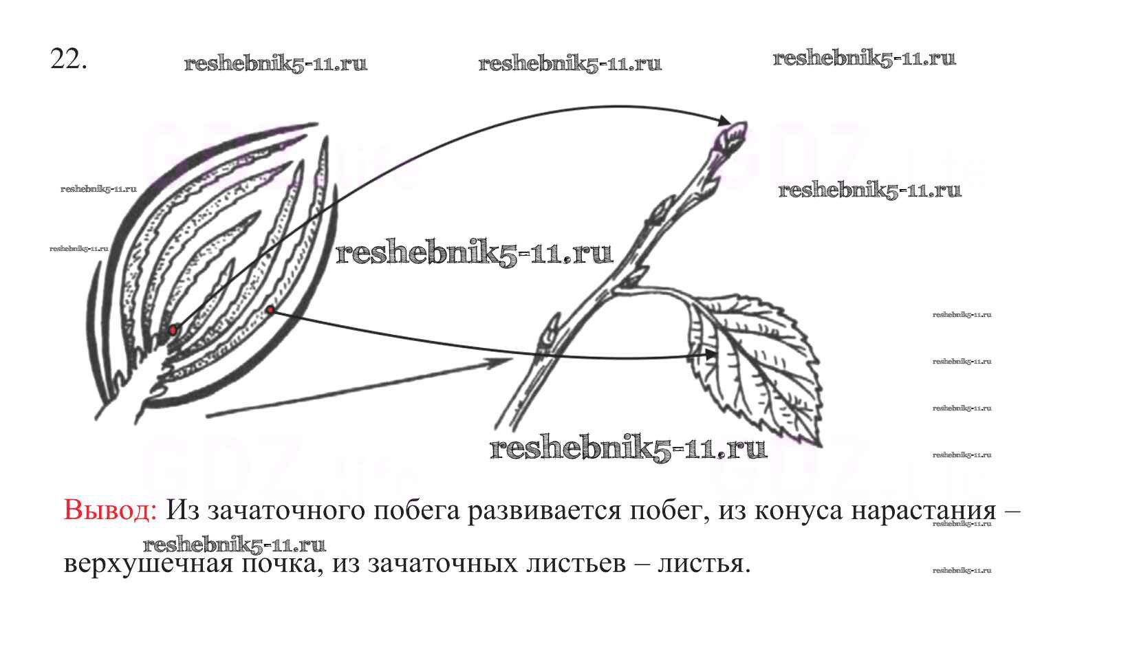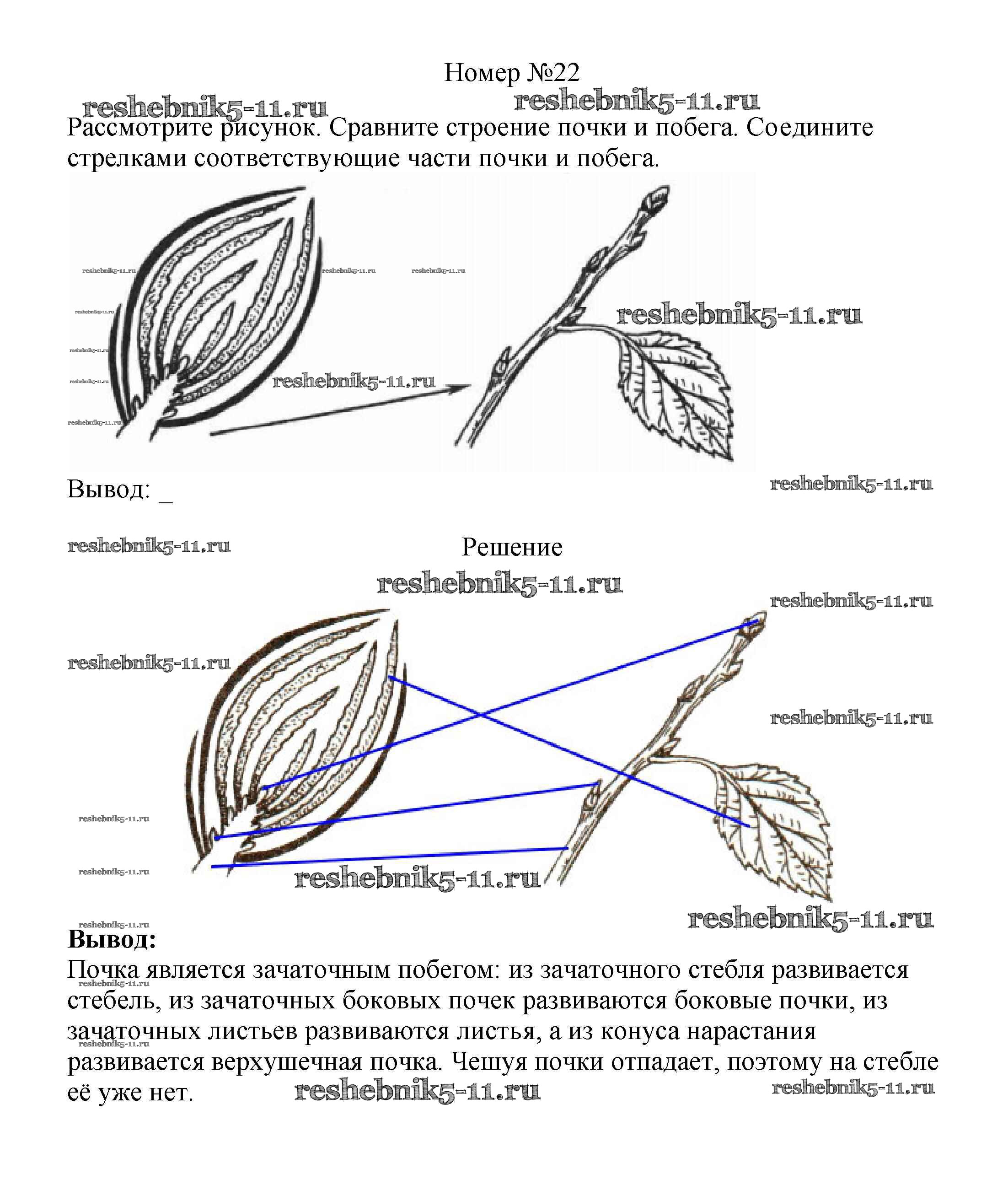 Готовая домашняя работа с ответами по Биологии за 6 класс Пасечник Рабочая тетрадь УМК Дрофа 2017 ФГОС - Упражнения 22