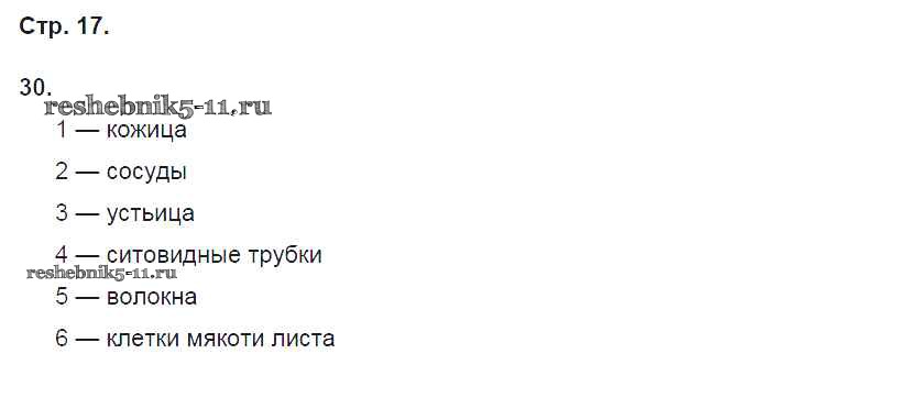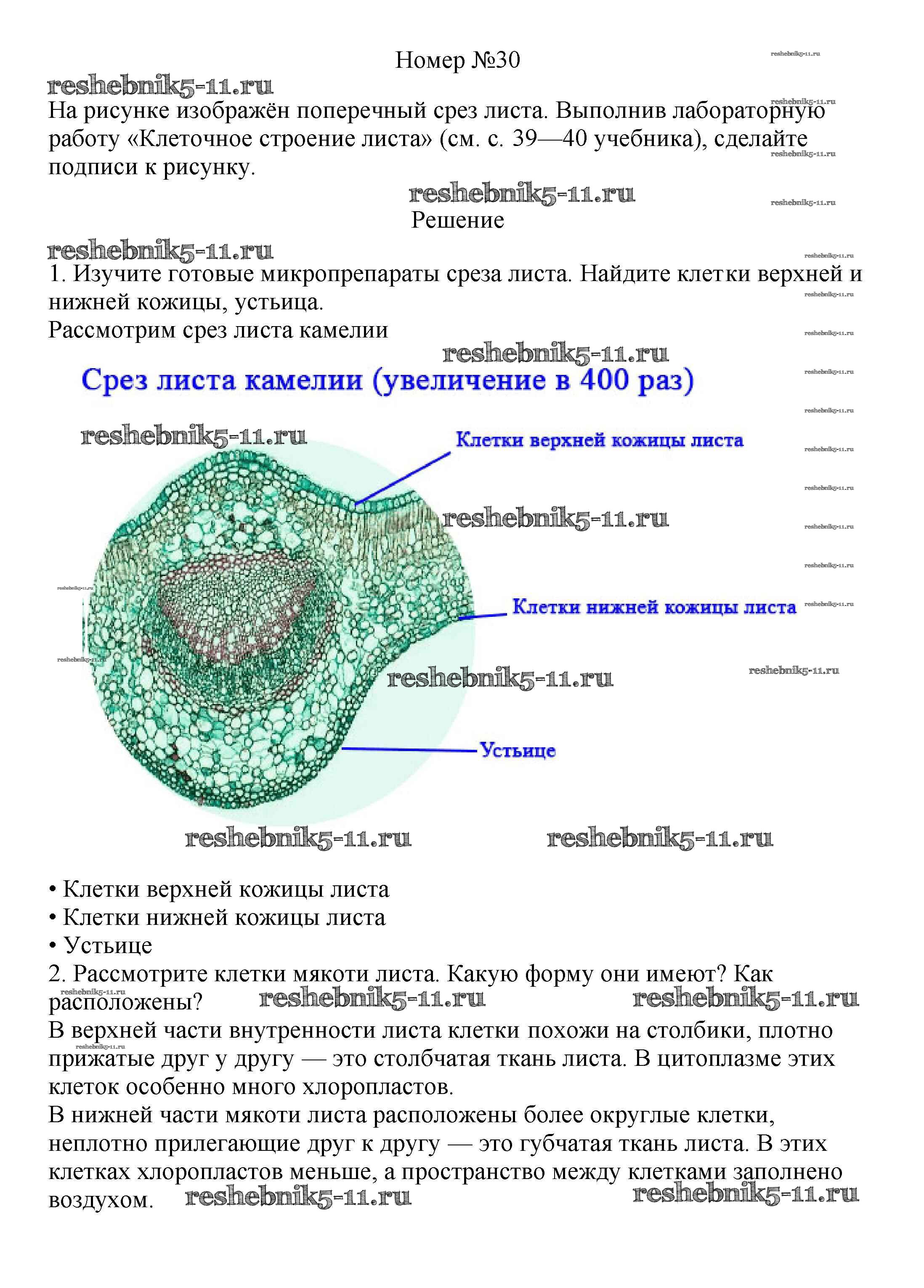 Готовая домашняя работа с ответами по Биологии за 6 класс Пасечник Рабочая тетрадь УМК Дрофа 2017 ФГОС - Упражнения 30