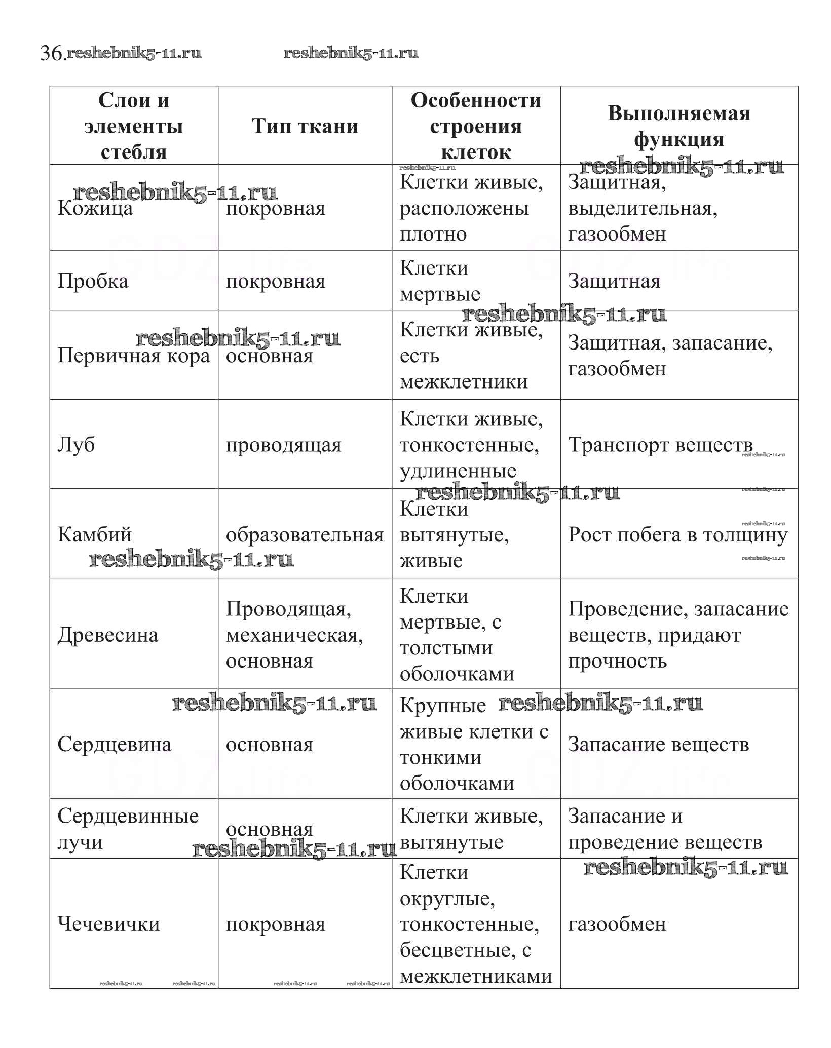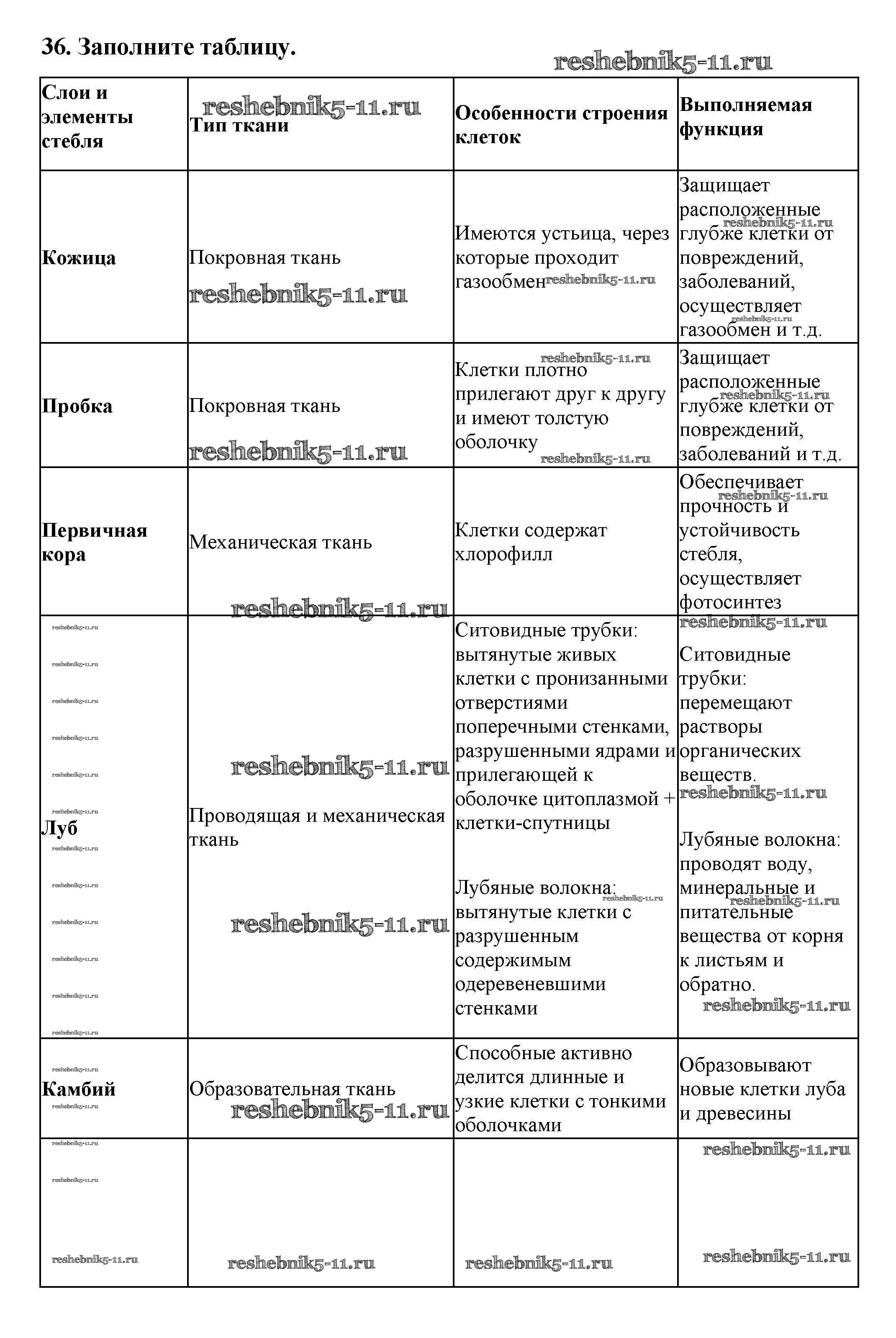 Биология за 6 класс Пасечник Рабочая тетрадь УМК Дрофа упражнение 36