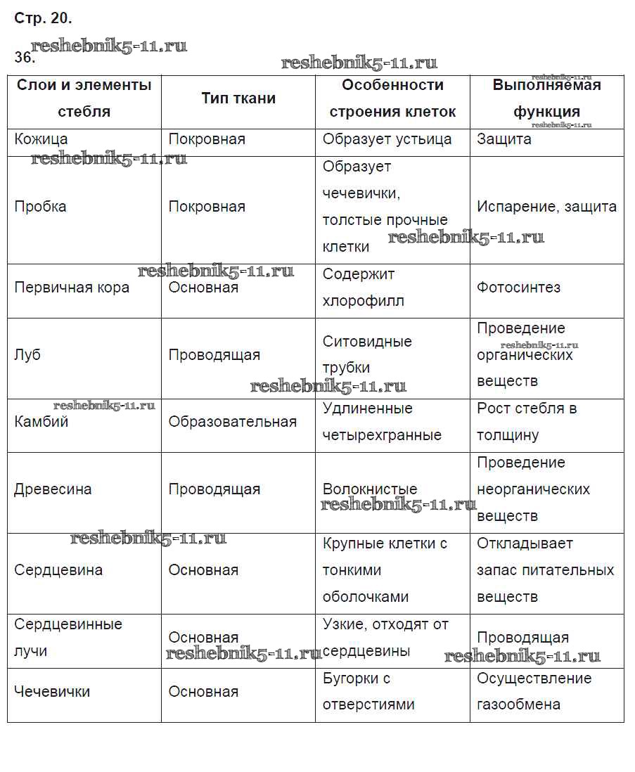 Готовая домашняя работа с ответами по Биологии за 6 класс Пасечник Рабочая тетрадь УМК Дрофа 2017 ФГОС - Упражнения 36