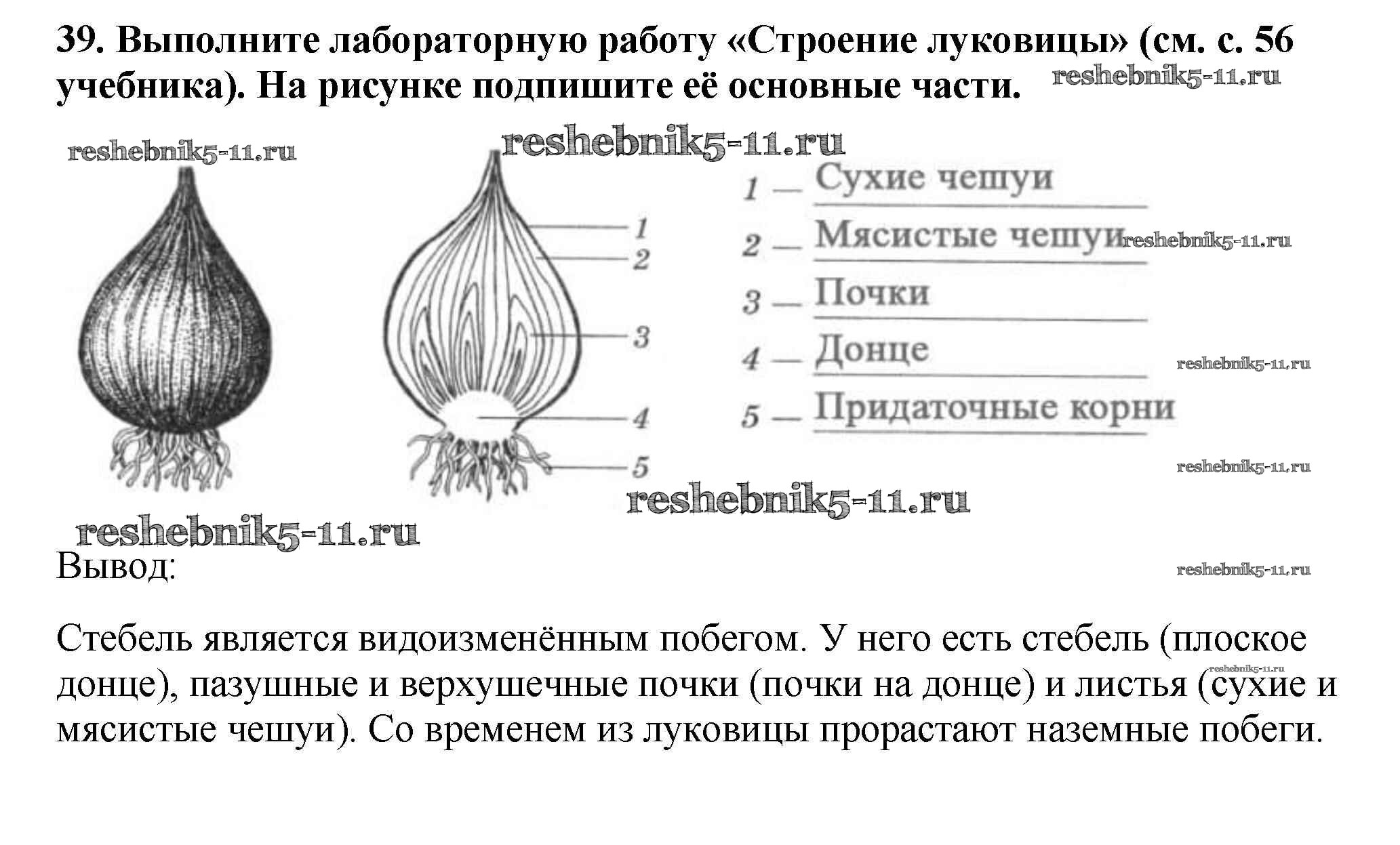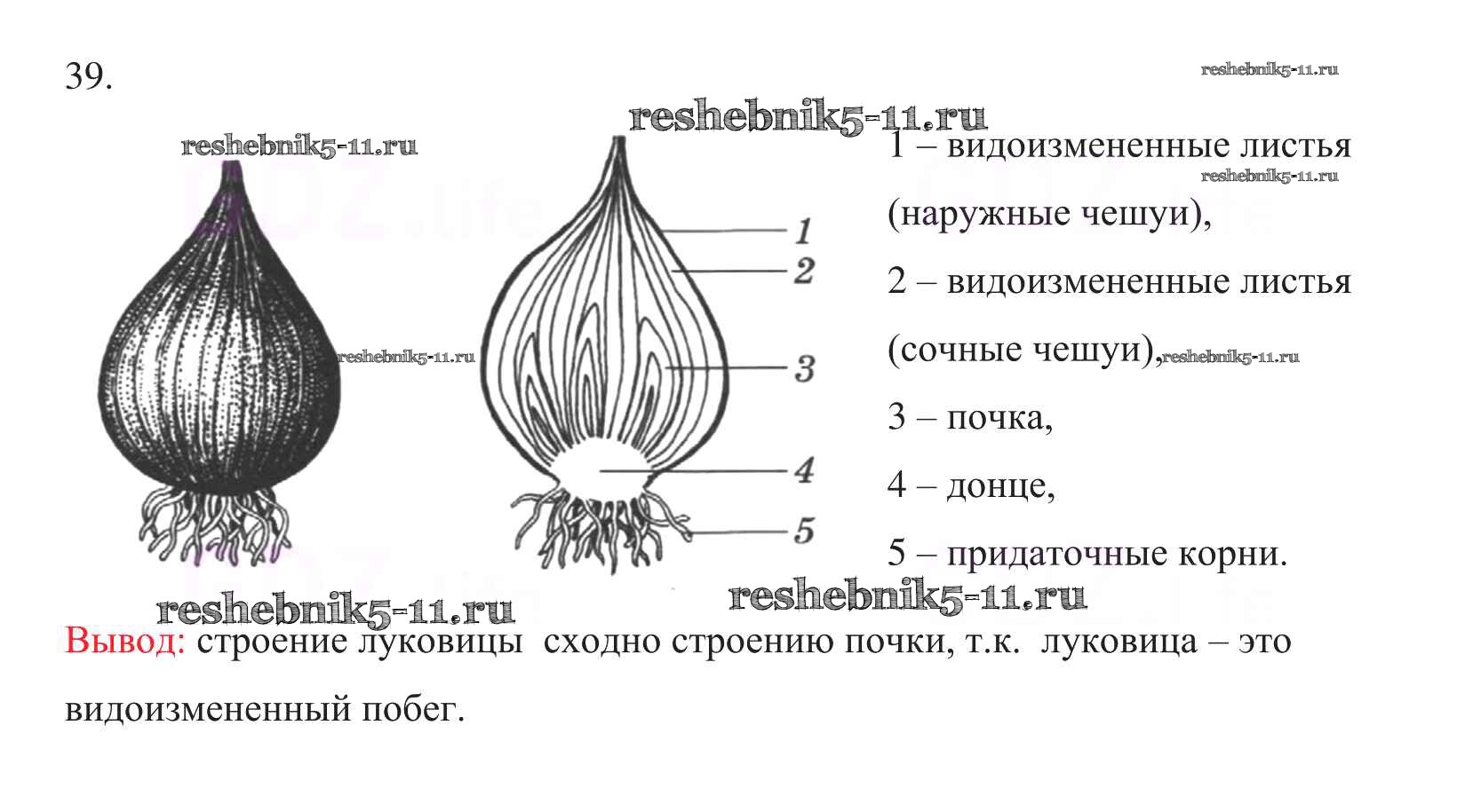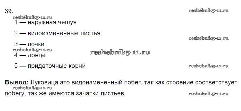 Готовая домашняя работа с ответами по Биологии за 6 класс Пасечник Рабочая тетрадь УМК Дрофа 2017 ФГОС - Упражнения 39