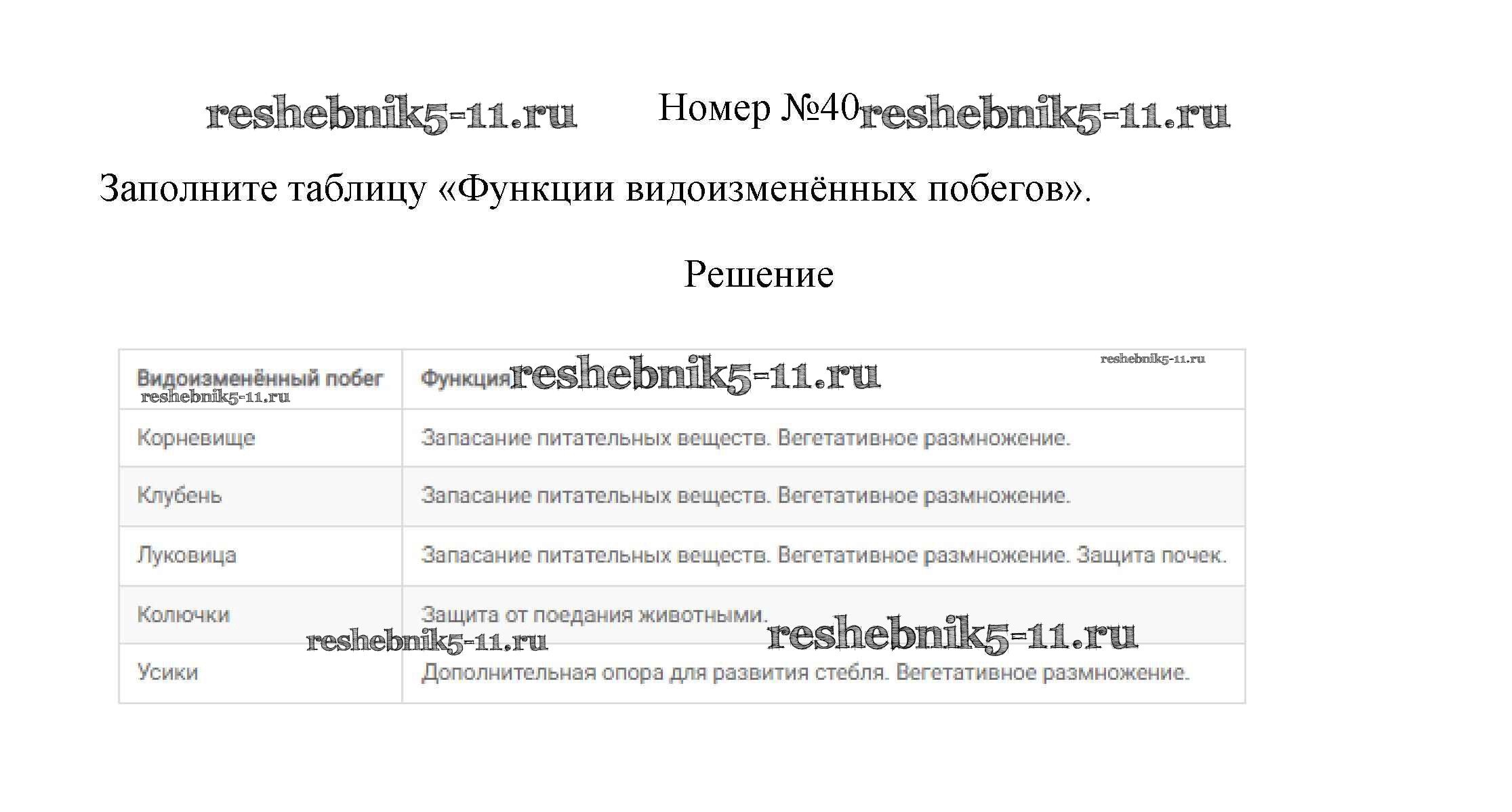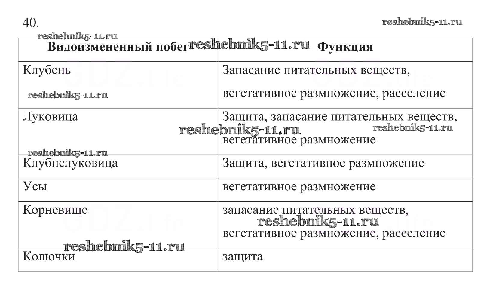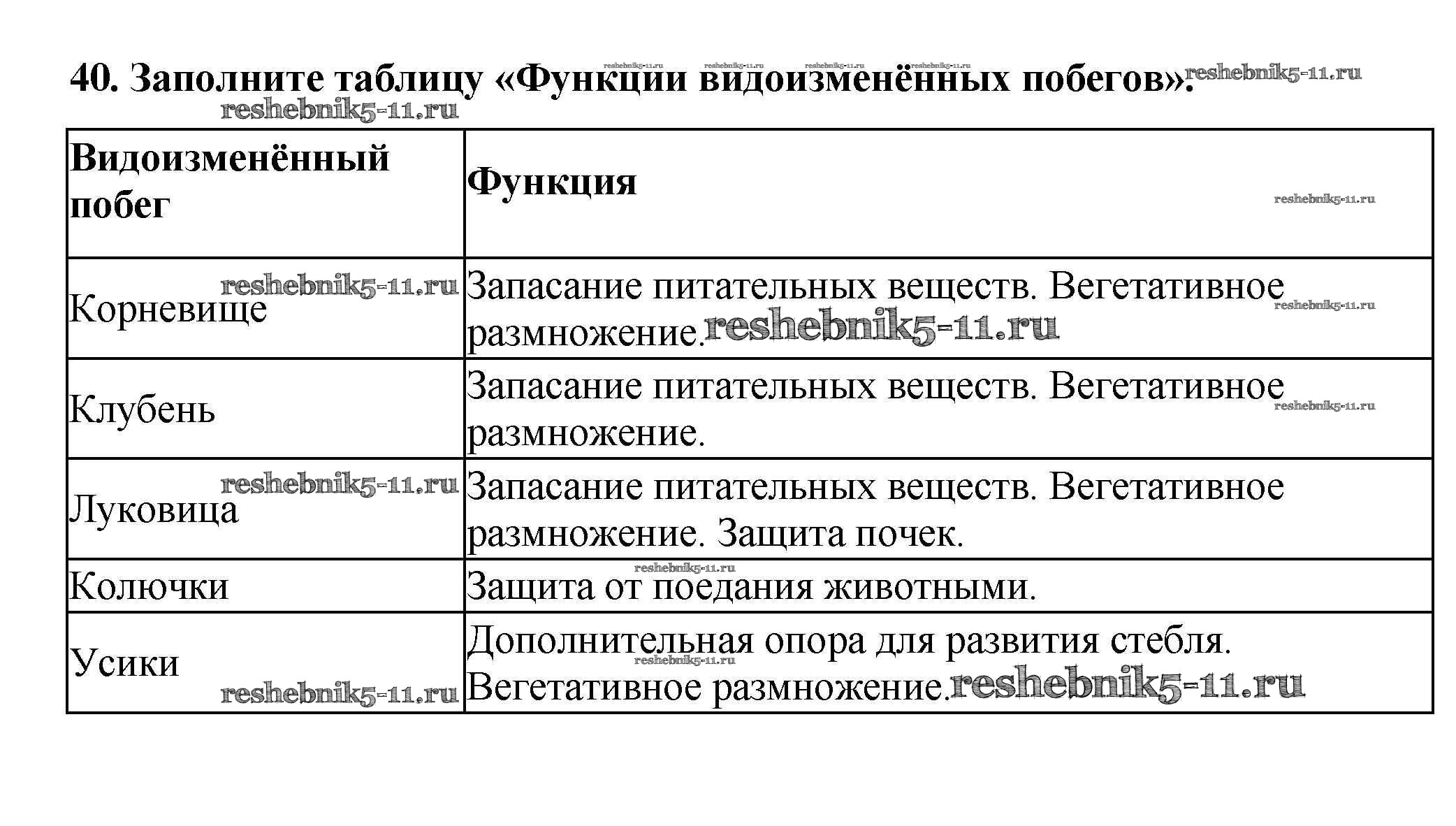 Готовая домашняя работа с ответами по Биологии за 6 класс Пасечник Рабочая тетрадь УМК Дрофа 2017 ФГОС - Упражнения 40