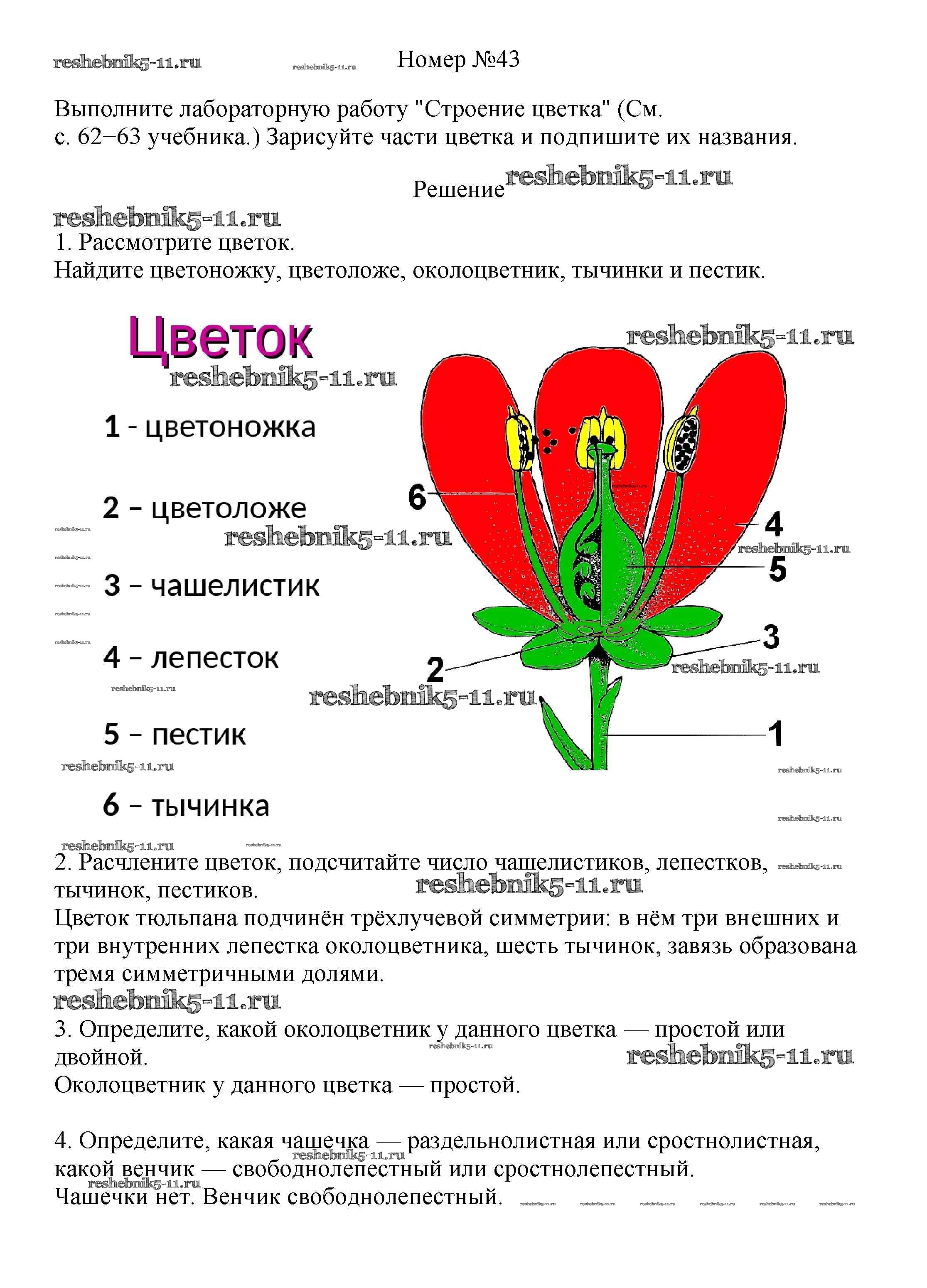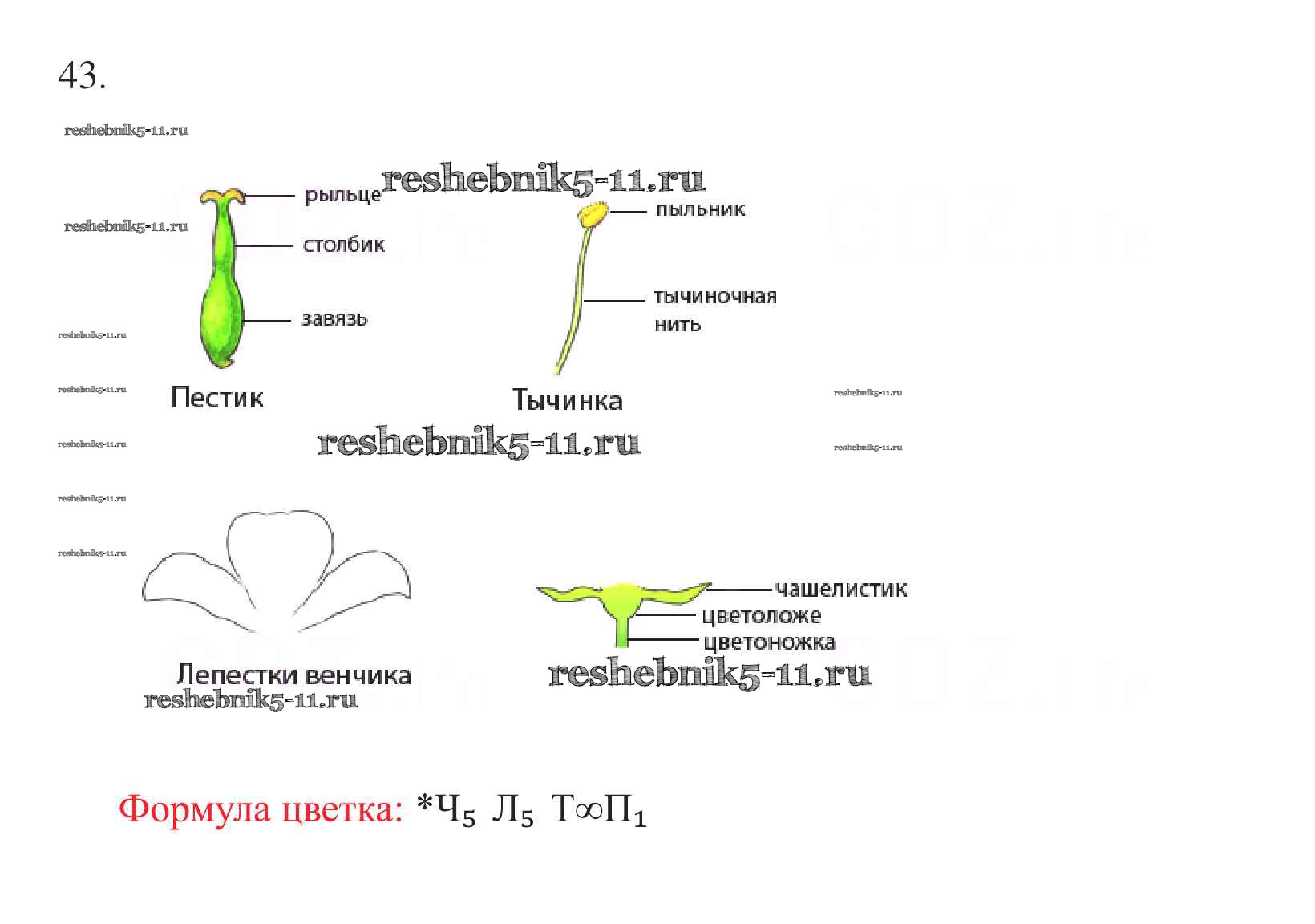 Готовая домашняя работа с ответами по Биологии за 6 класс Пасечник Рабочая тетрадь УМК Дрофа 2017 ФГОС - Упражнения 43