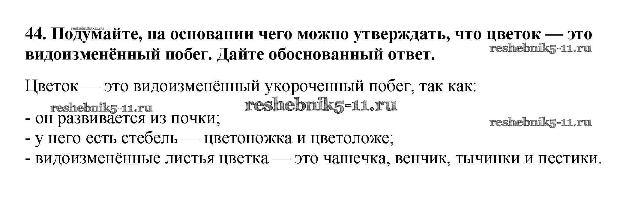 Биология за 6 класс Пасечник Рабочая тетрадь УМК Дрофа упражнение 44
