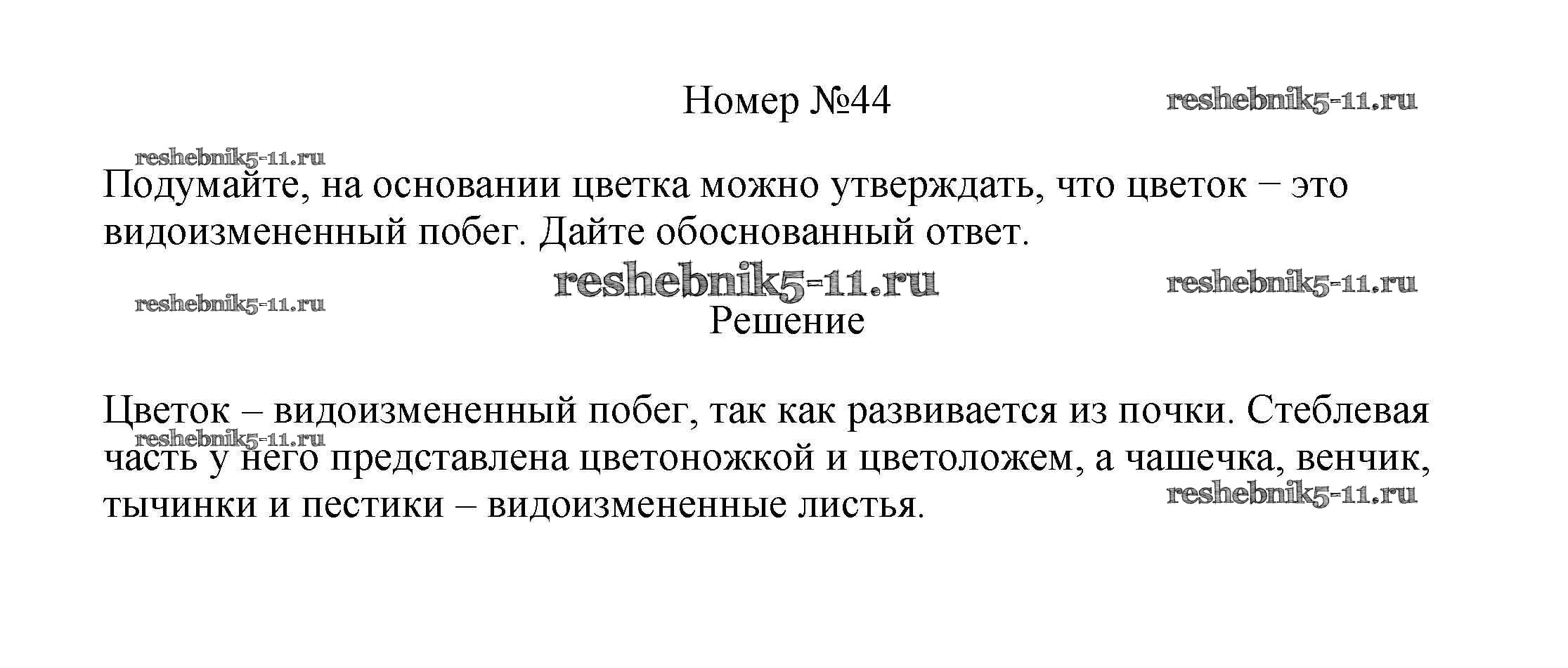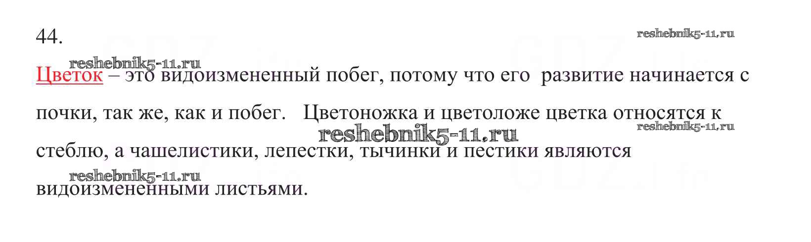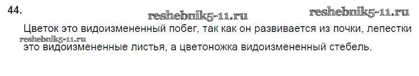 Готовая домашняя работа с ответами по Биологии за 6 класс Пасечник Рабочая тетрадь УМК Дрофа 2017 ФГОС - Упражнения 44