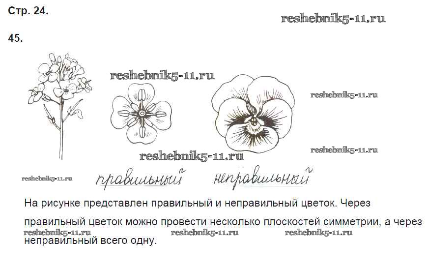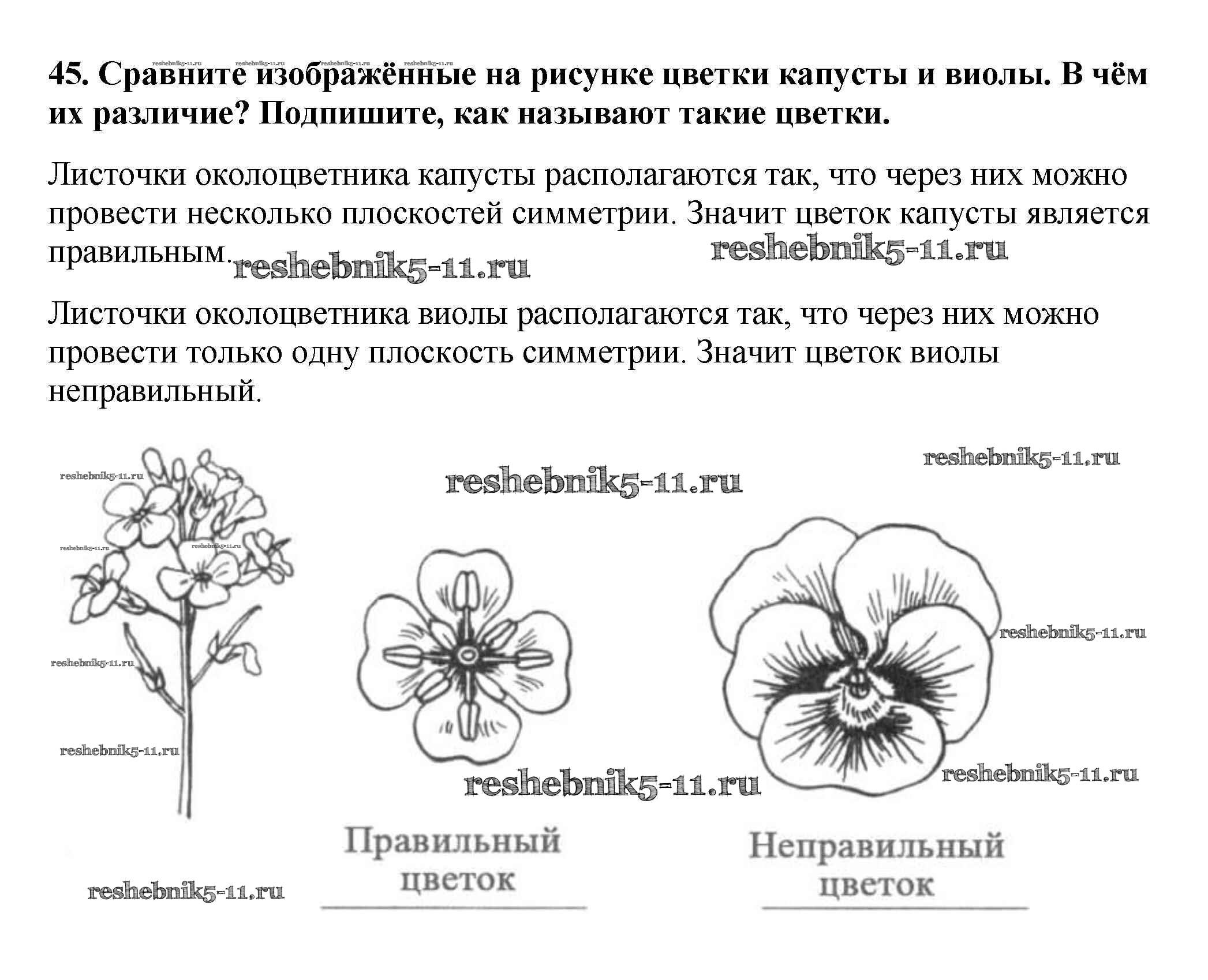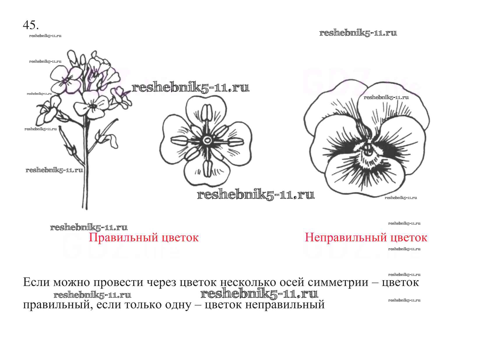 Готовая домашняя работа с ответами по Биологии за 6 класс Пасечник Рабочая тетрадь УМК Дрофа 2017 ФГОС - Упражнения 45