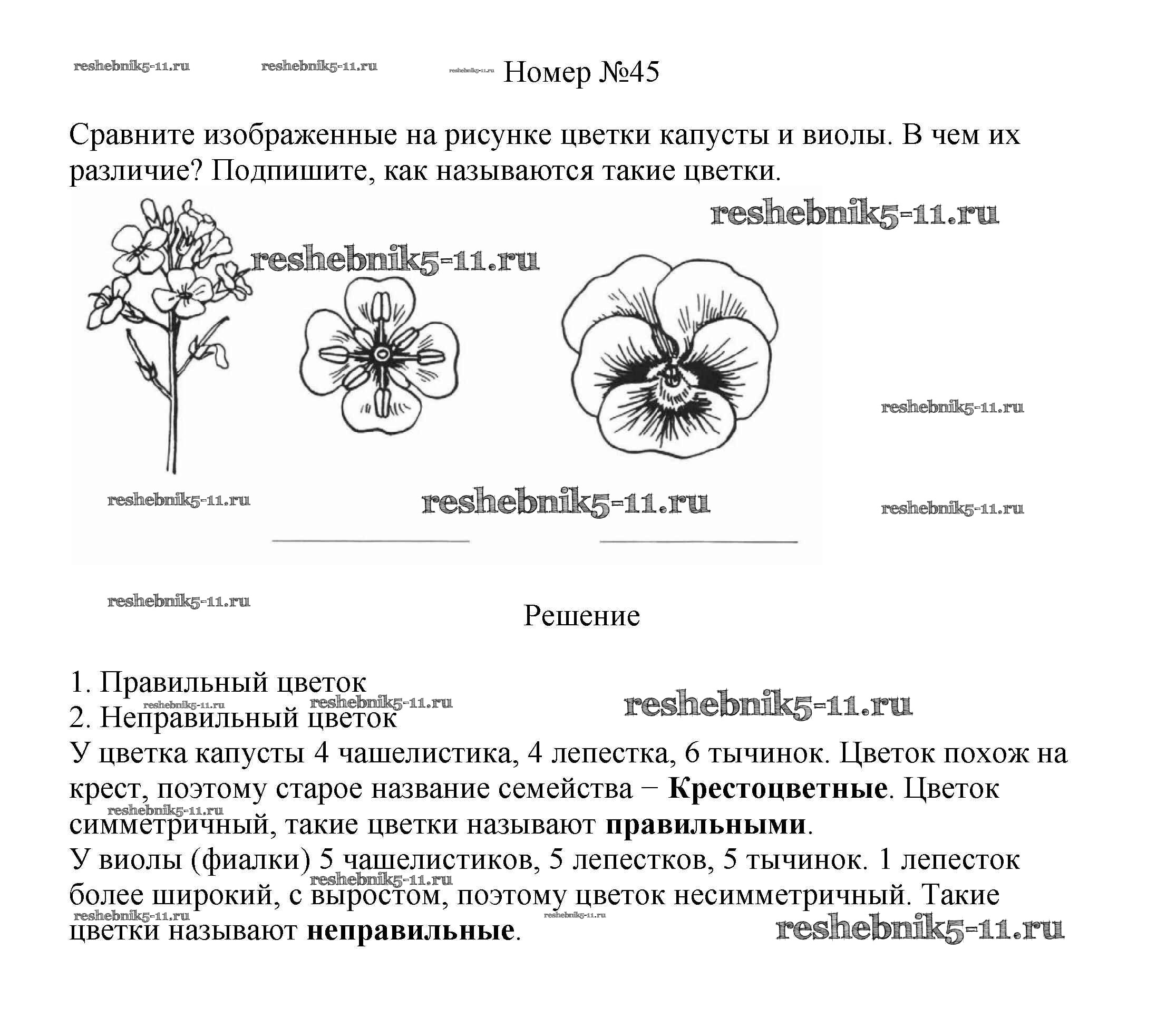 Биология за 6 класс Пасечник Рабочая тетрадь УМК Дрофа упражнение 45