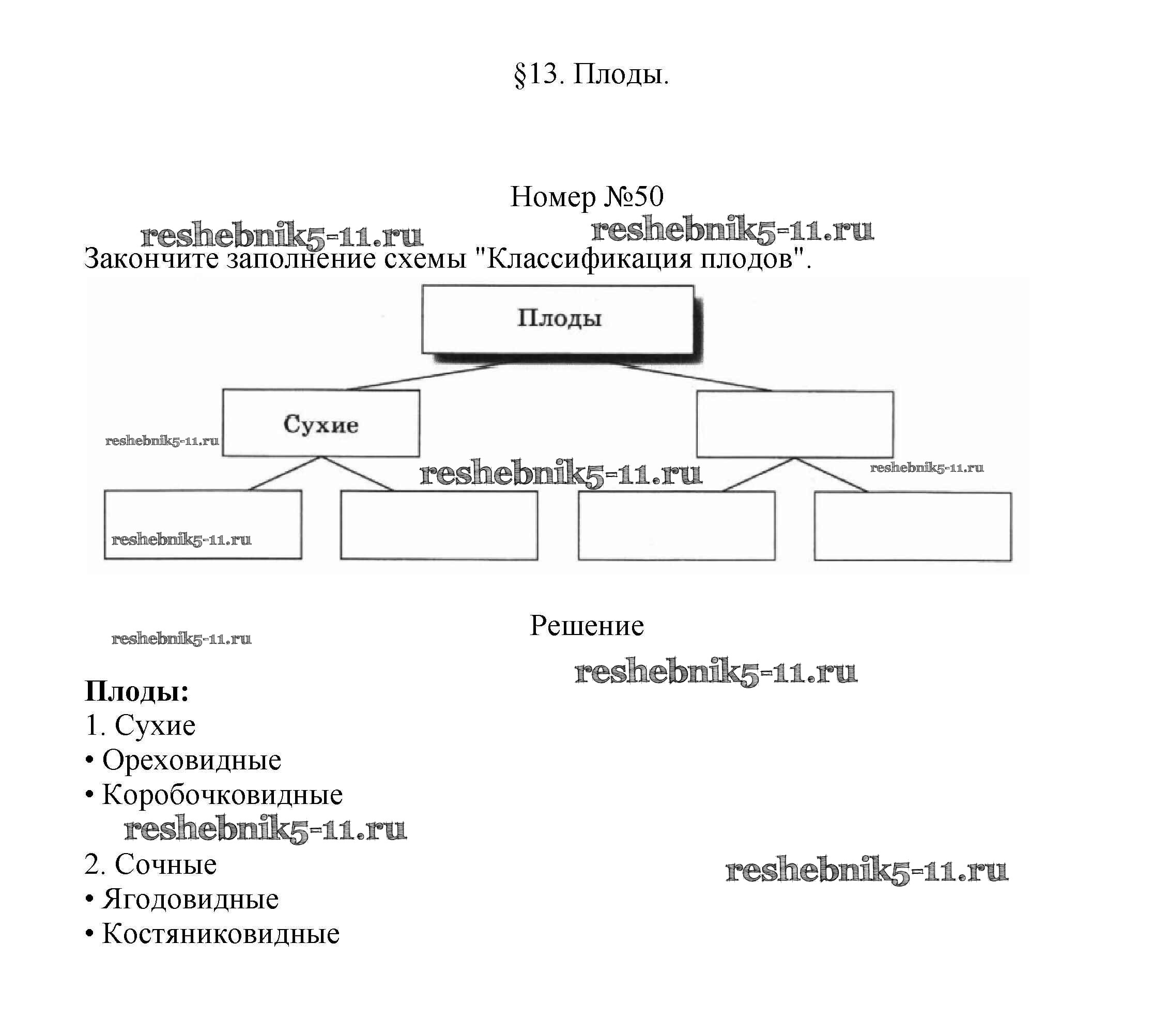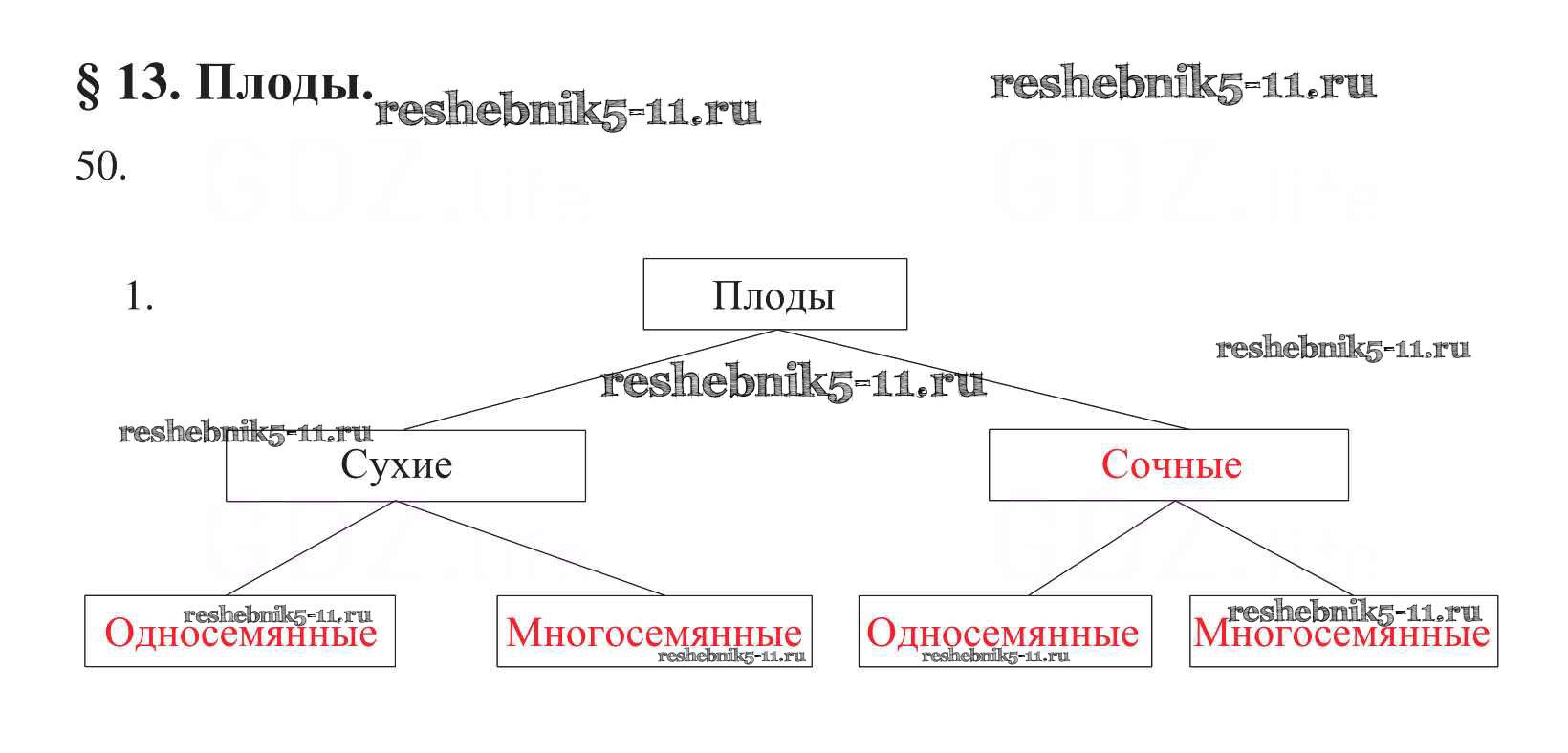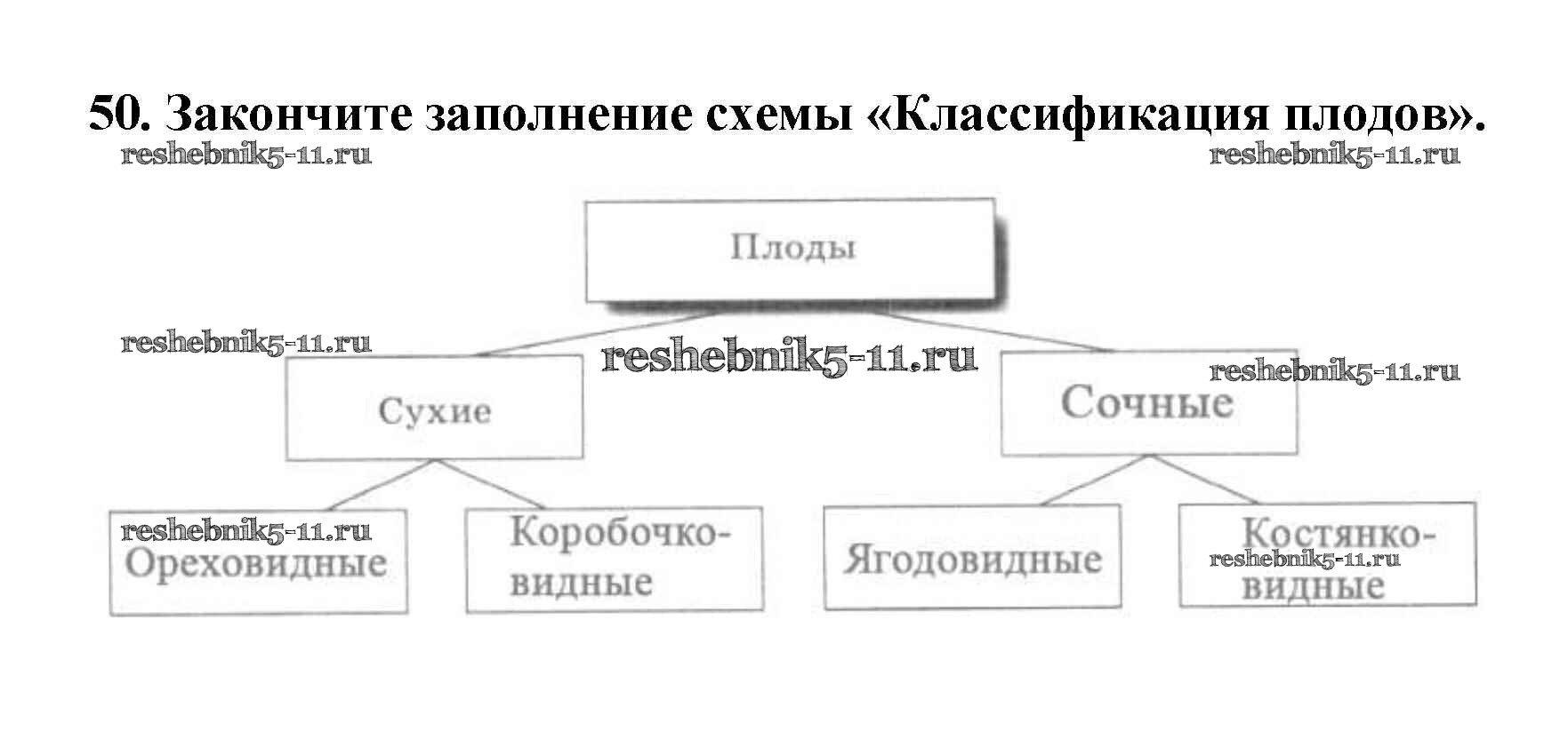 Готовая домашняя работа с ответами по Биологии за 6 класс Пасечник Рабочая тетрадь УМК Дрофа 2017 ФГОС - Упражнения 50