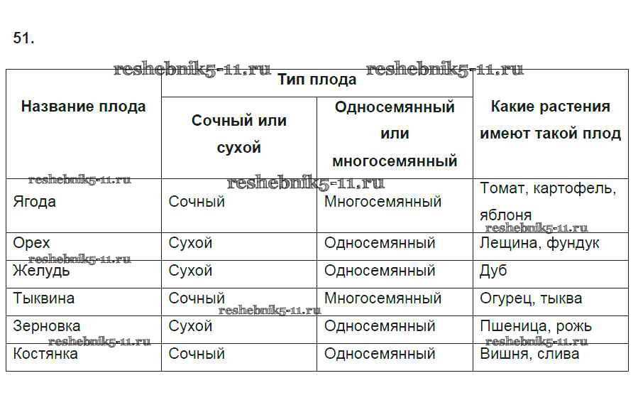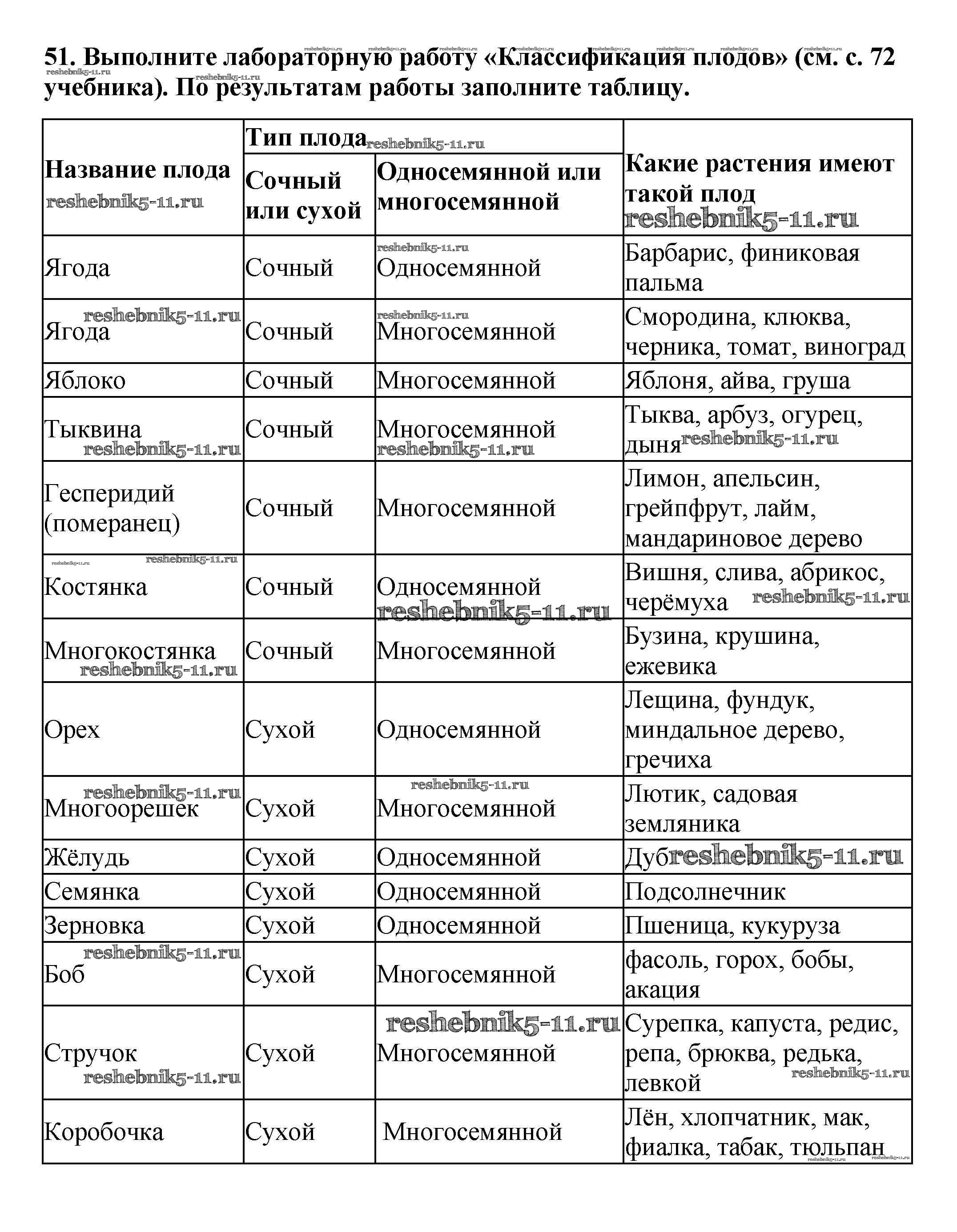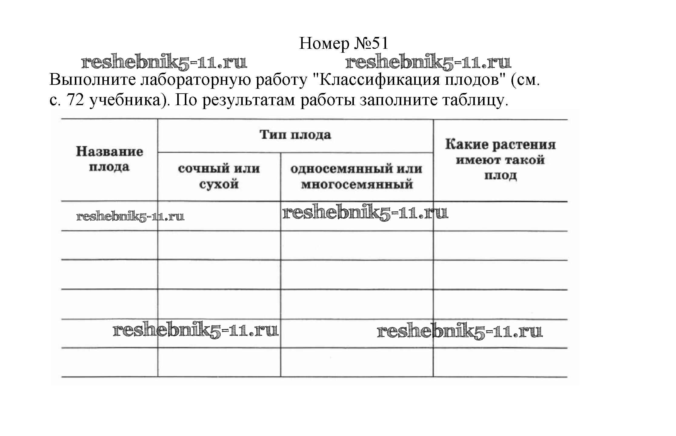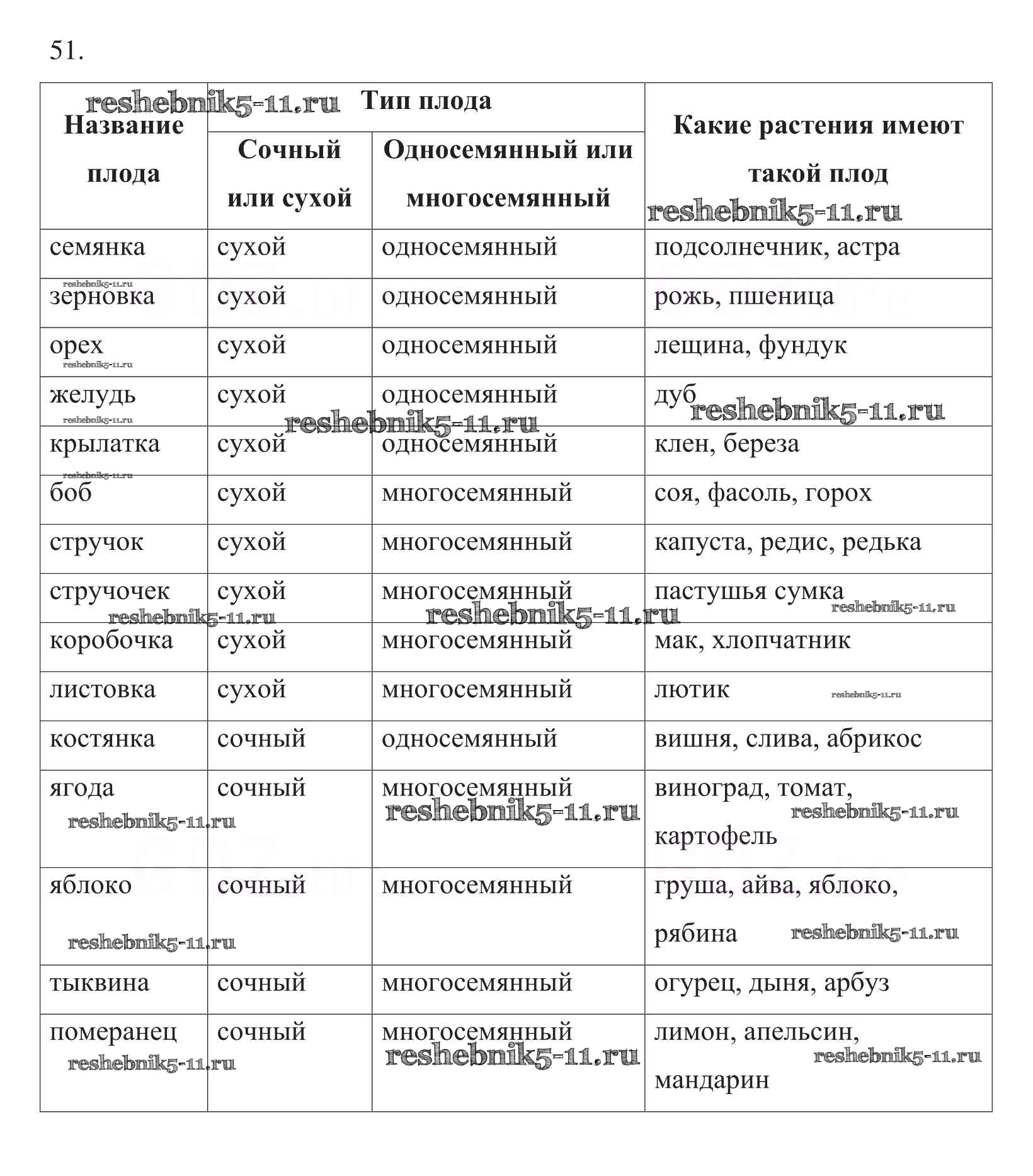 Готовая домашняя работа с ответами по Биологии за 6 класс Пасечник Рабочая тетрадь УМК Дрофа 2017 ФГОС - Упражнения 51