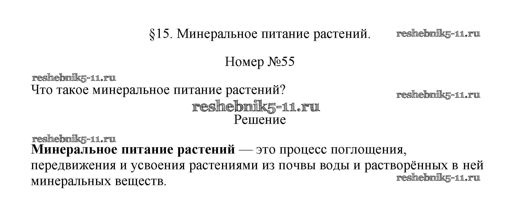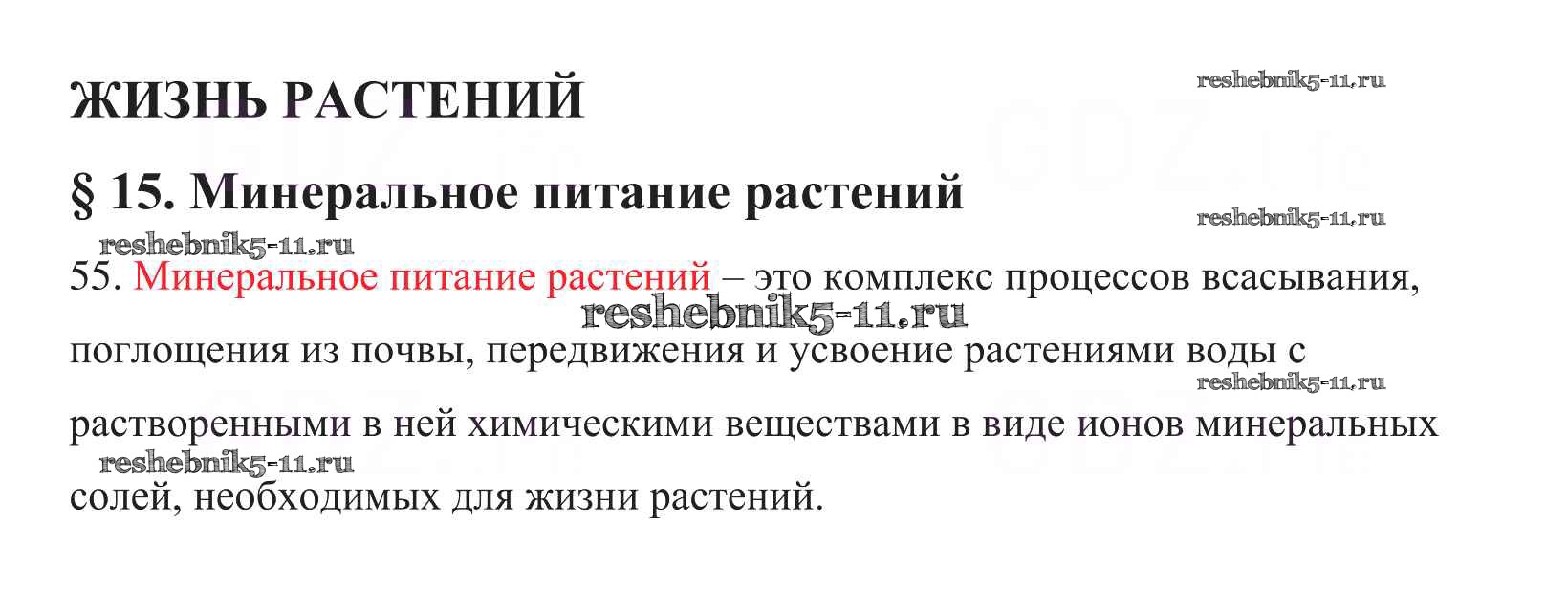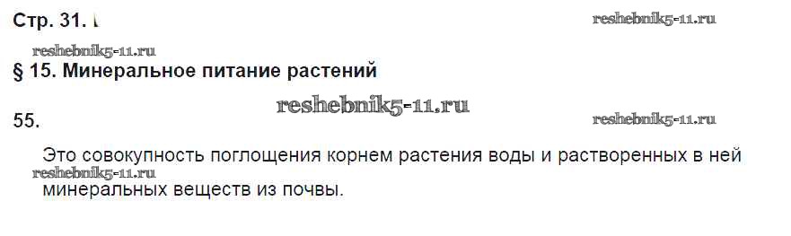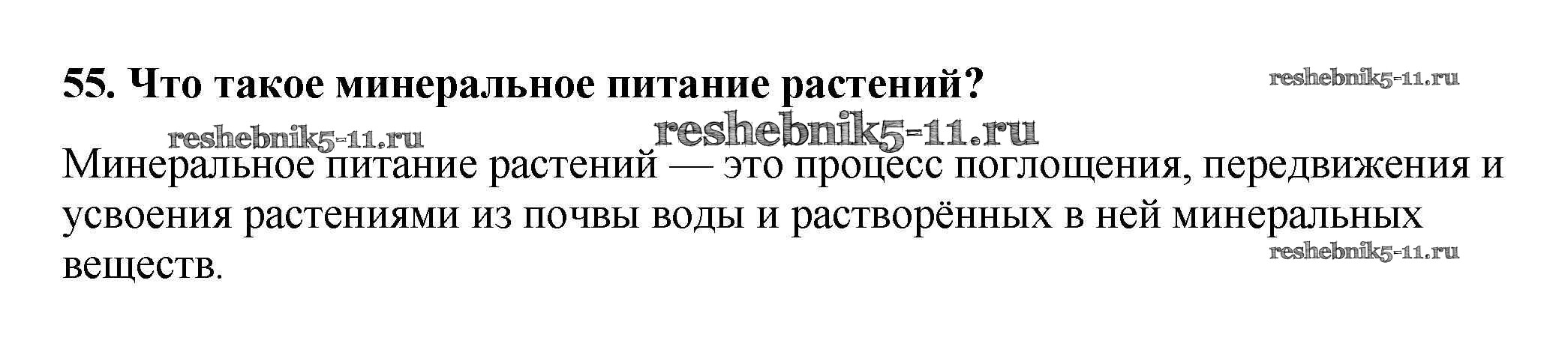 Готовая домашняя работа с ответами по Биологии за 6 класс Пасечник Рабочая тетрадь УМК Дрофа 2017 ФГОС - Упражнения 55