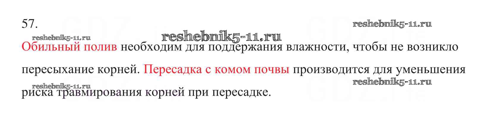 Готовая домашняя работа с ответами по Биологии за 6 класс Пасечник Рабочая тетрадь УМК Дрофа 2017 ФГОС - Упражнения 57