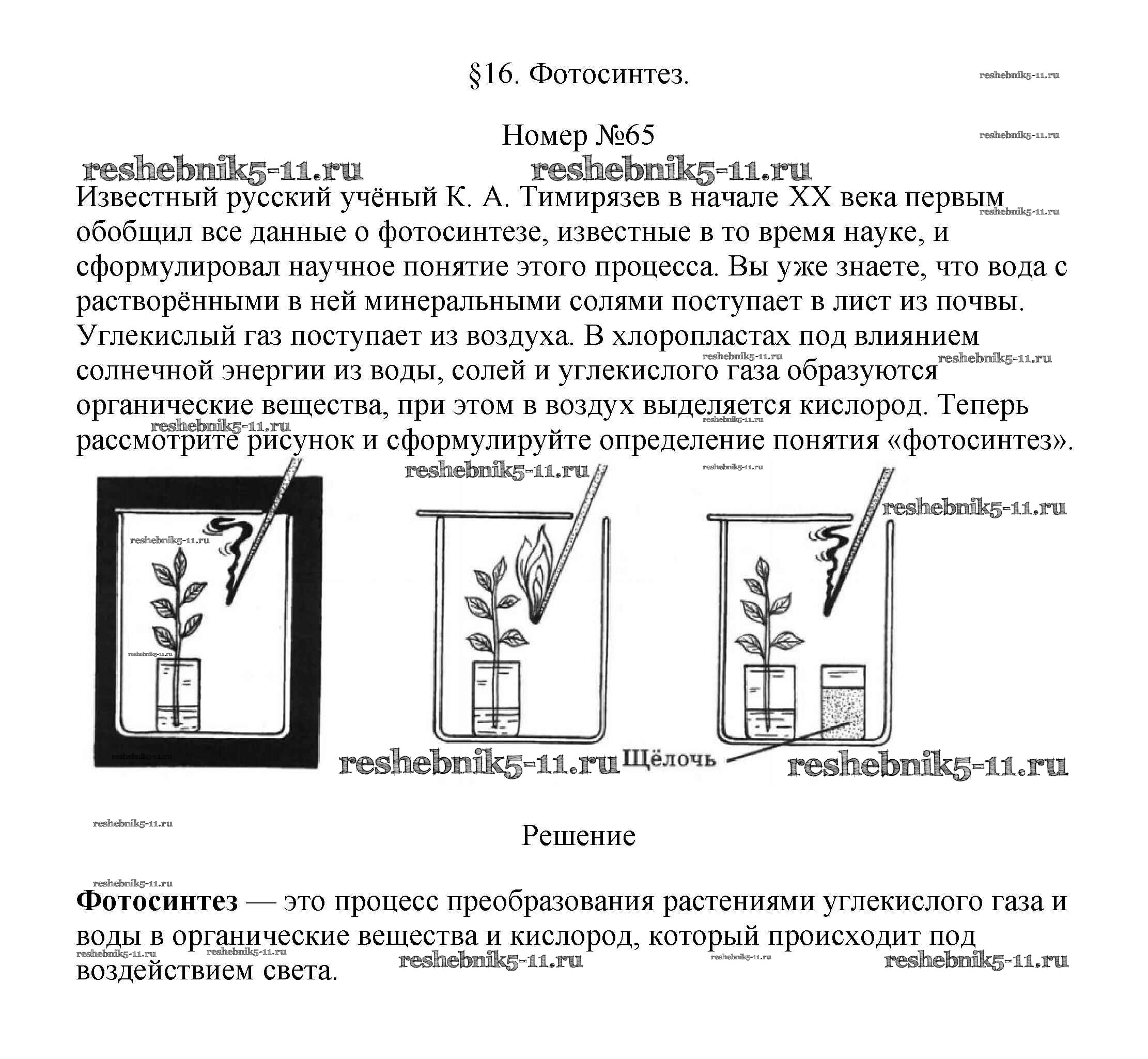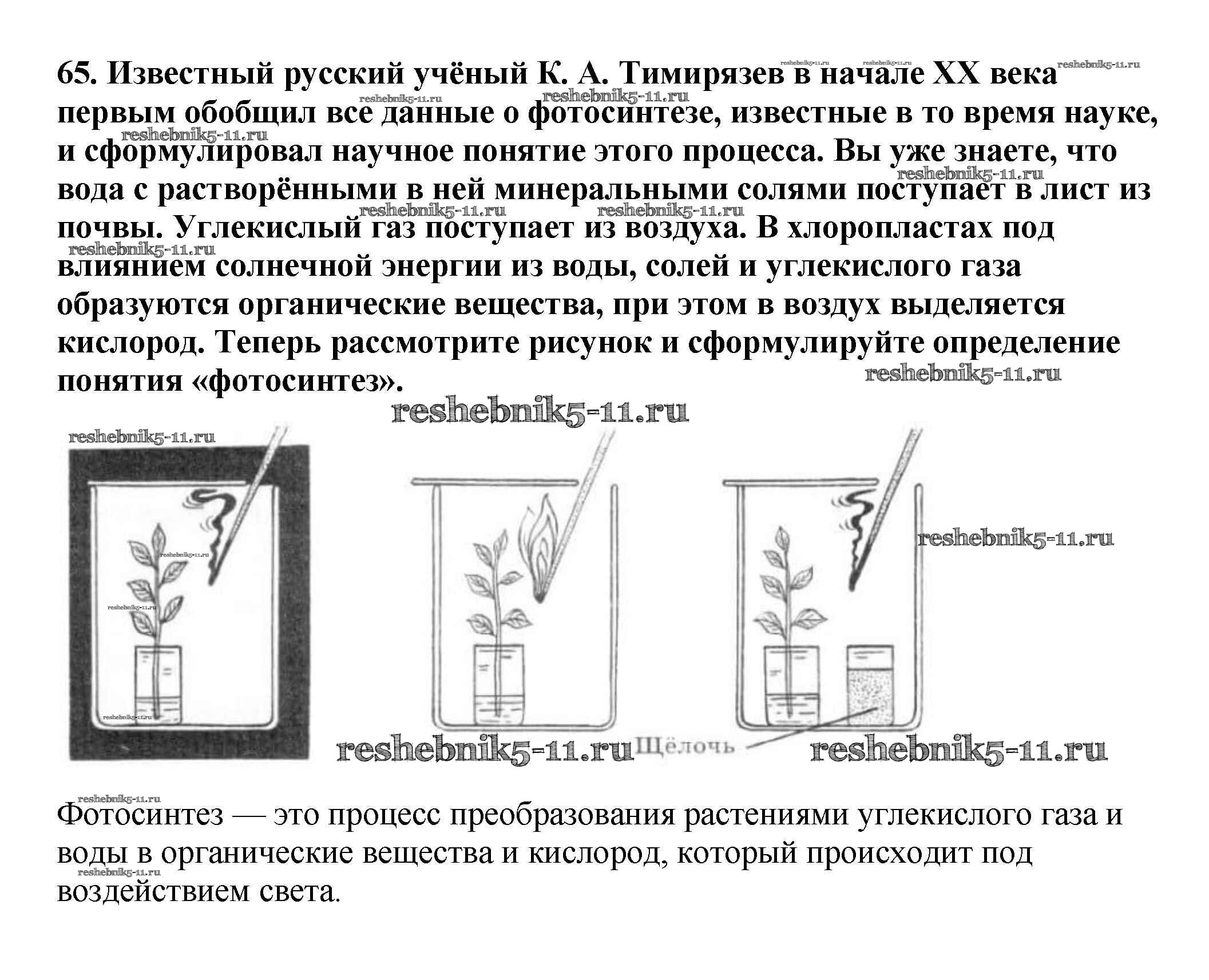 Готовая домашняя работа с ответами по Биологии за 6 класс Пасечник Рабочая тетрадь УМК Дрофа 2017 ФГОС - Упражнения 65