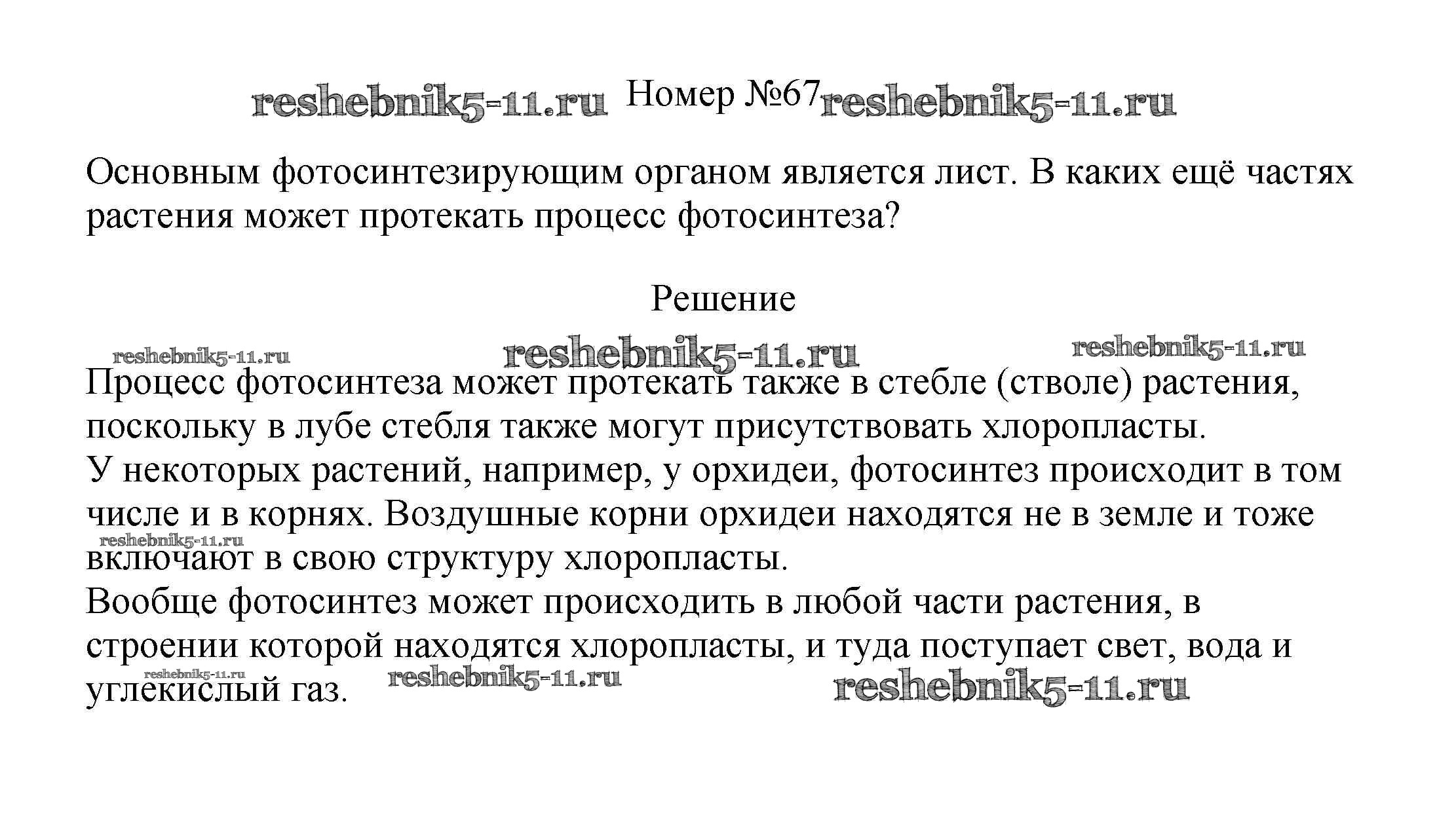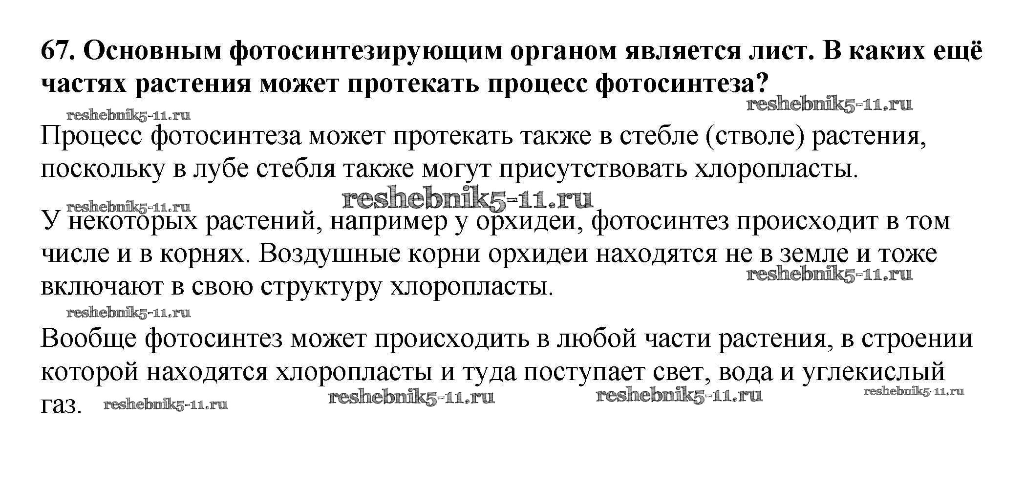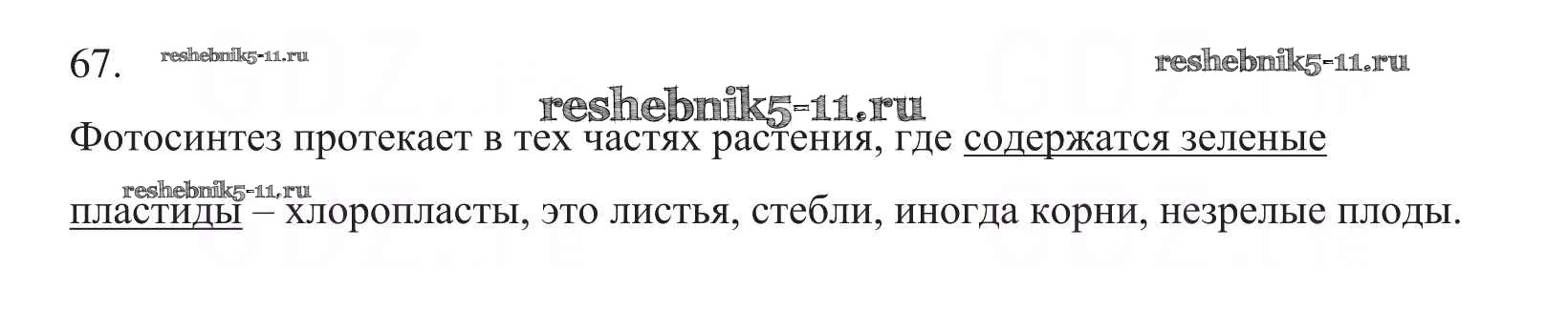 Готовая домашняя работа с ответами по Биологии за 6 класс Пасечник Рабочая тетрадь УМК Дрофа 2017 ФГОС - Упражнения 67