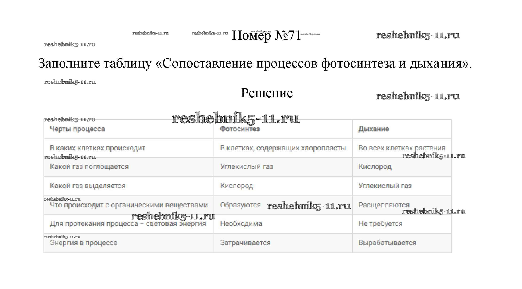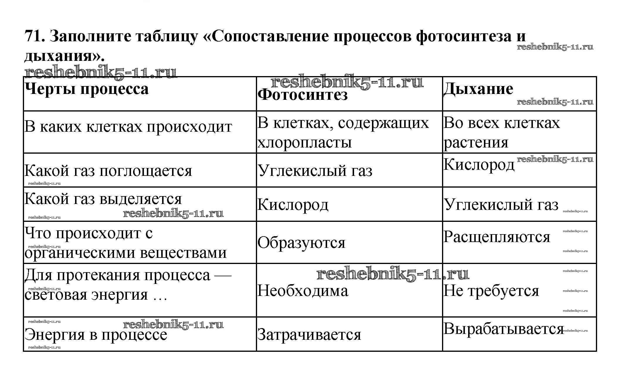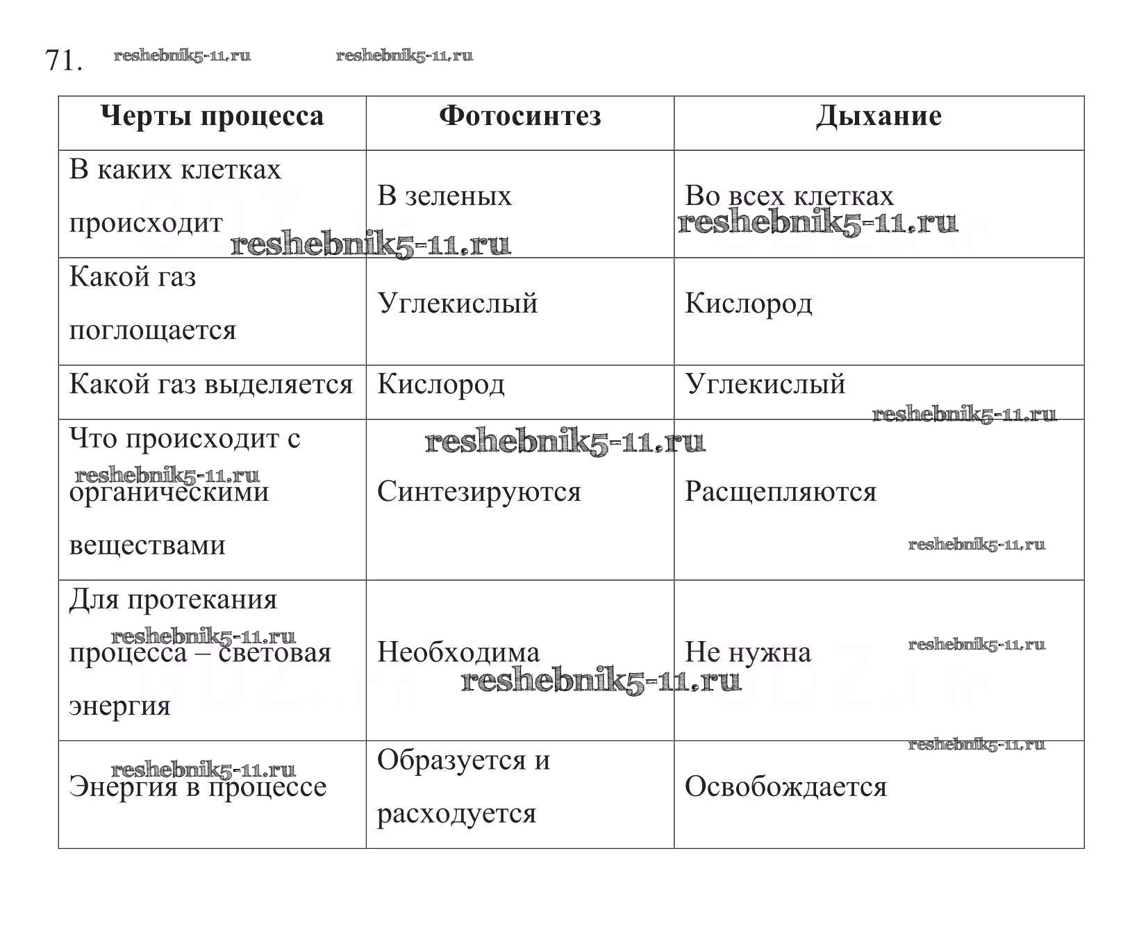 Готовая домашняя работа с ответами по Биологии за 6 класс Пасечник Рабочая тетрадь УМК Дрофа 2017 ФГОС - Упражнения 71