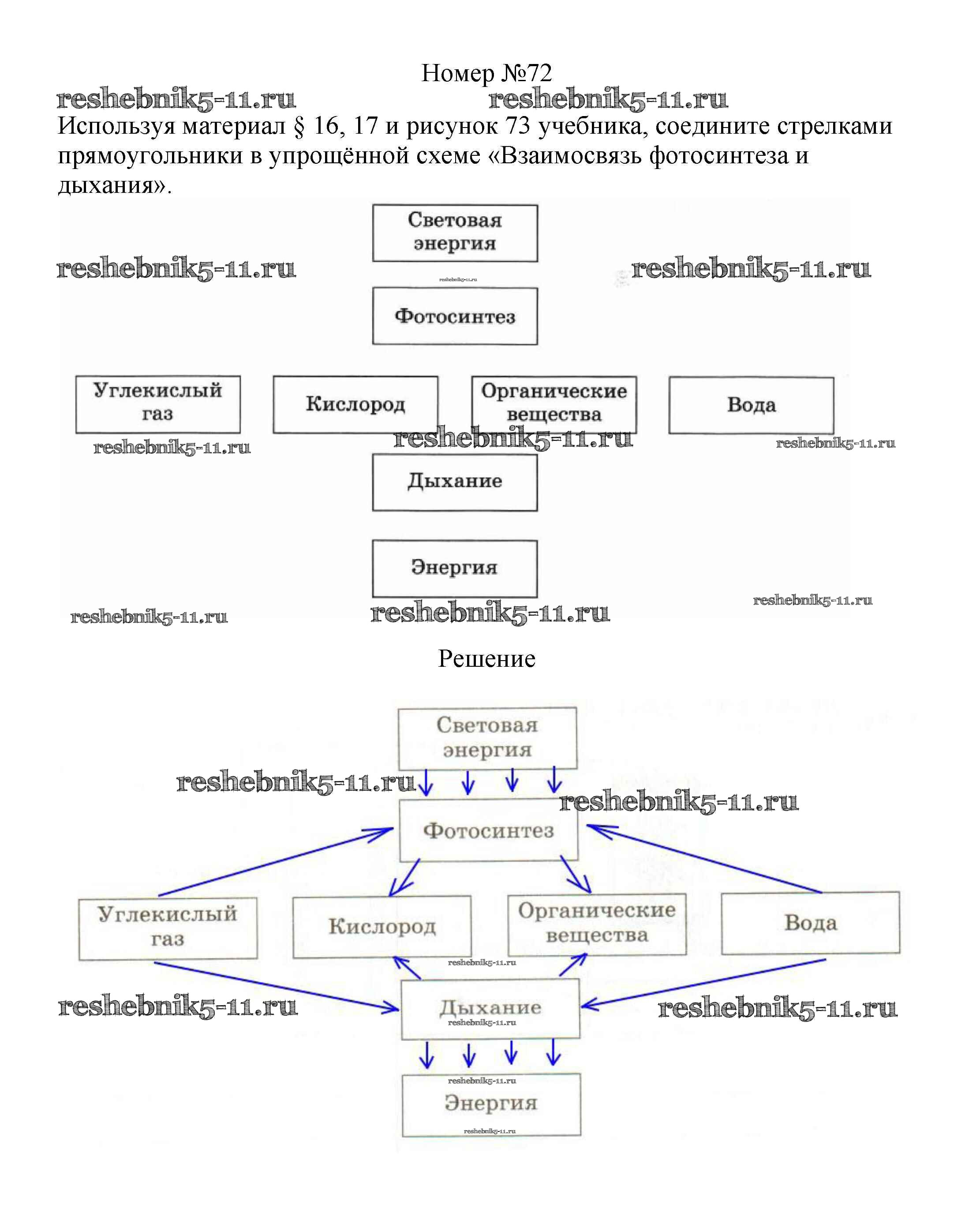 Готовая домашняя работа с ответами по Биологии за 6 класс Пасечник Рабочая тетрадь УМК Дрофа 2017 ФГОС - Упражнения 72