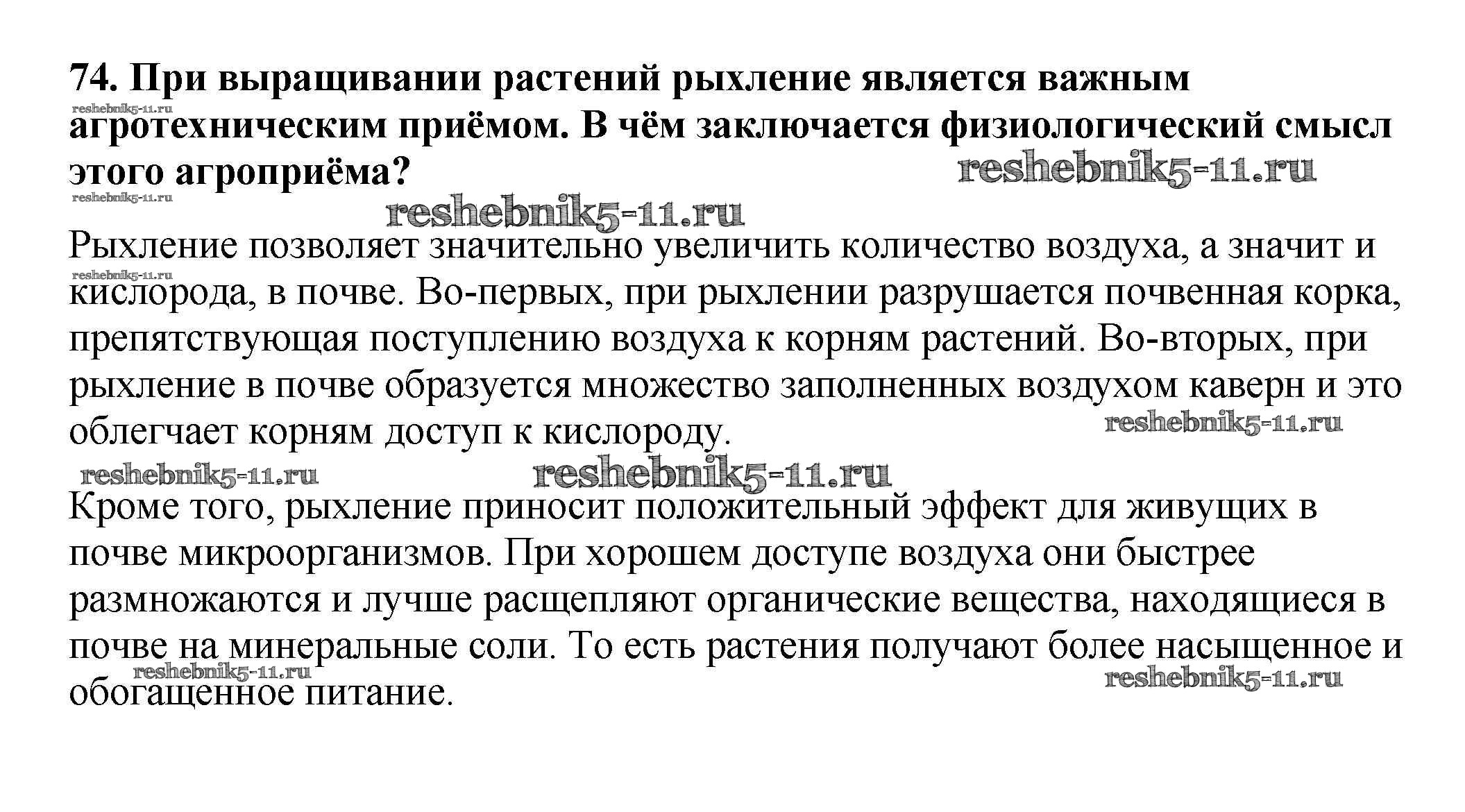 Готовая домашняя работа с ответами по Биологии за 6 класс Пасечник Рабочая тетрадь УМК Дрофа 2017 ФГОС - Упражнения 74