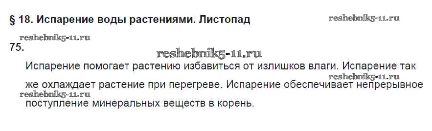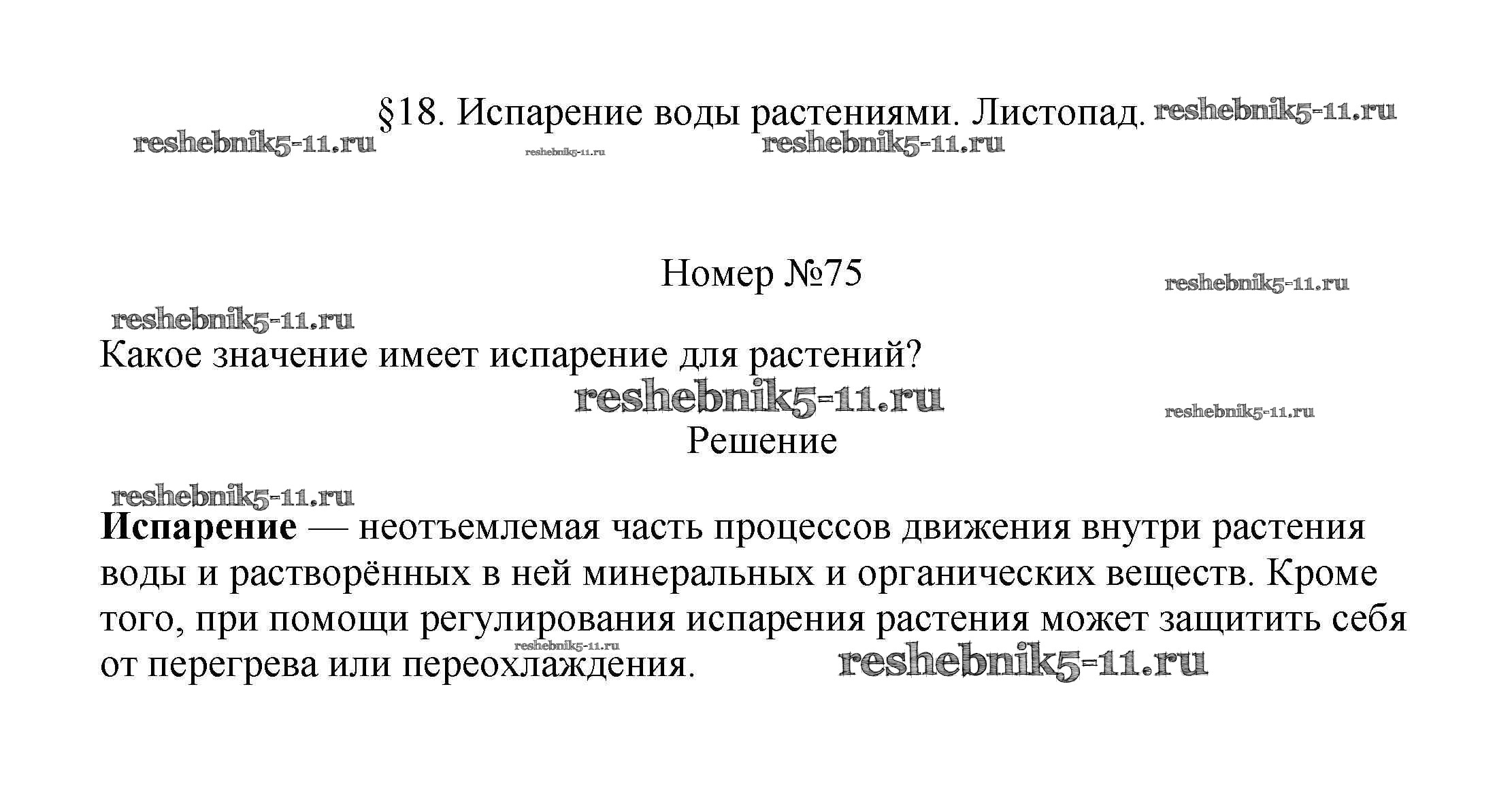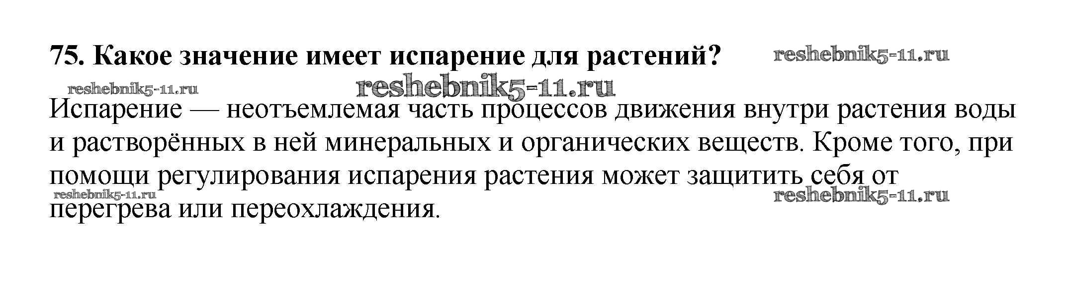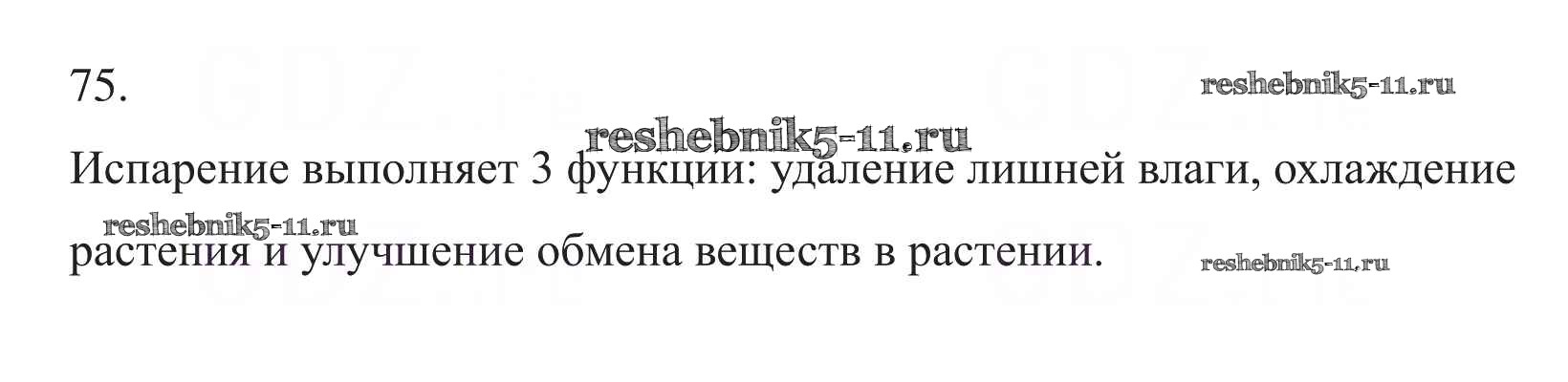 Готовая домашняя работа с ответами по Биологии за 6 класс Пасечник Рабочая тетрадь УМК Дрофа 2017 ФГОС - Упражнения 75