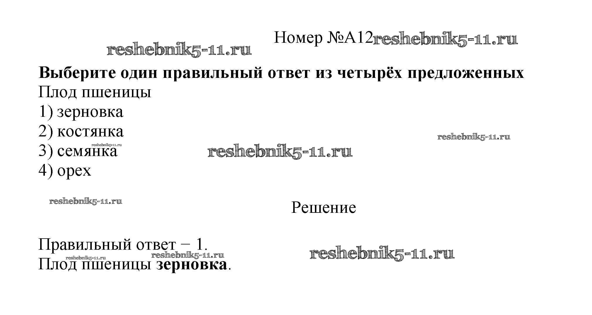 Решебник №1 / тренировочные задания / строение и многообразие покрытосеменных растений / задания части A / 12