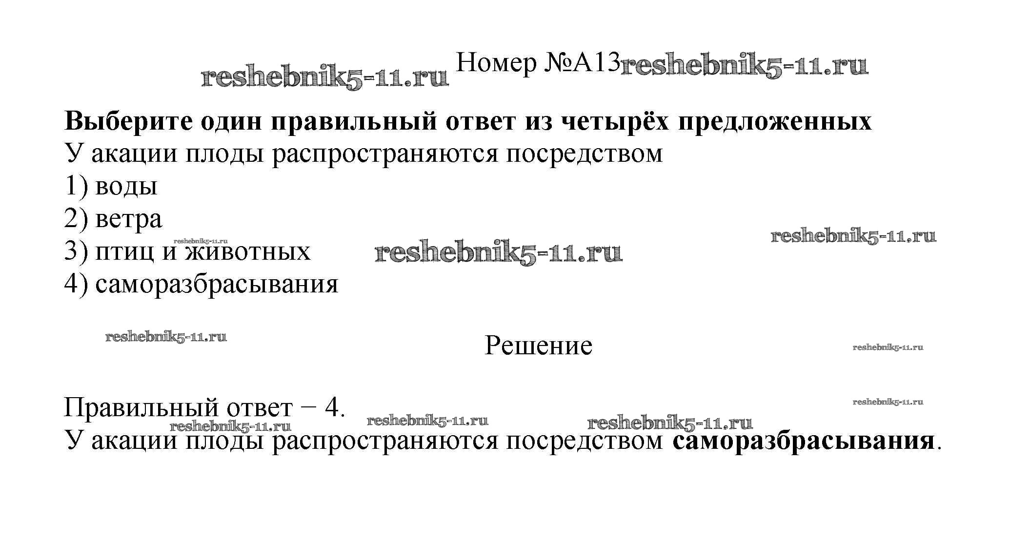Решебник №1 / тренировочные задания / строение и многообразие покрытосеменных растений / задания части A / 13