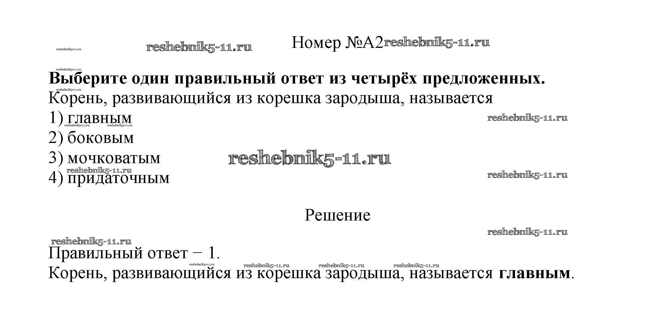 Биология за 6 класс Пасечник Рабочая тетрадь УМК Дрофа задания части A 2