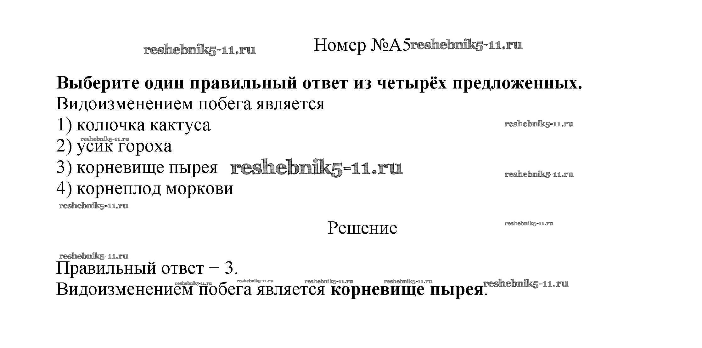 Готовая домашняя работа с ответами по Биологии за 6 класс Пасечник Рабочая тетрадь УМК Дрофа 2017 ФГОС - Задания части A 5