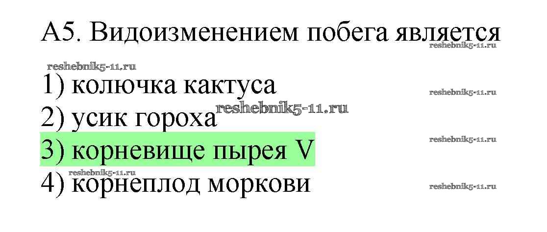 Решебник №1 / тренировочные задания / строение и многообразие покрытосеменных растений / задания части A / 5