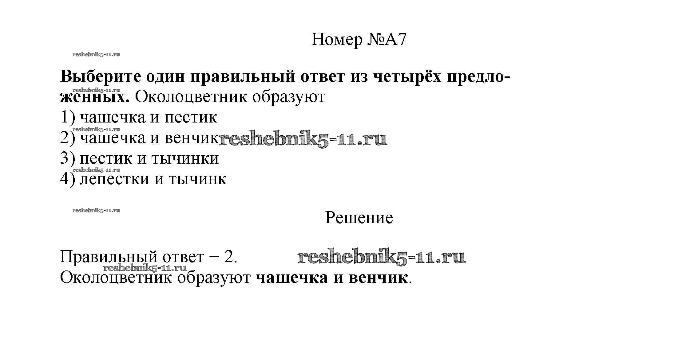 Биология за 6 класс Пасечник Рабочая тетрадь УМК Дрофа задания части A 7