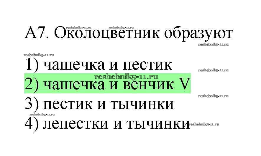 Решебник №1 / тренировочные задания / строение и многообразие покрытосеменных растений / задания части A / 7
