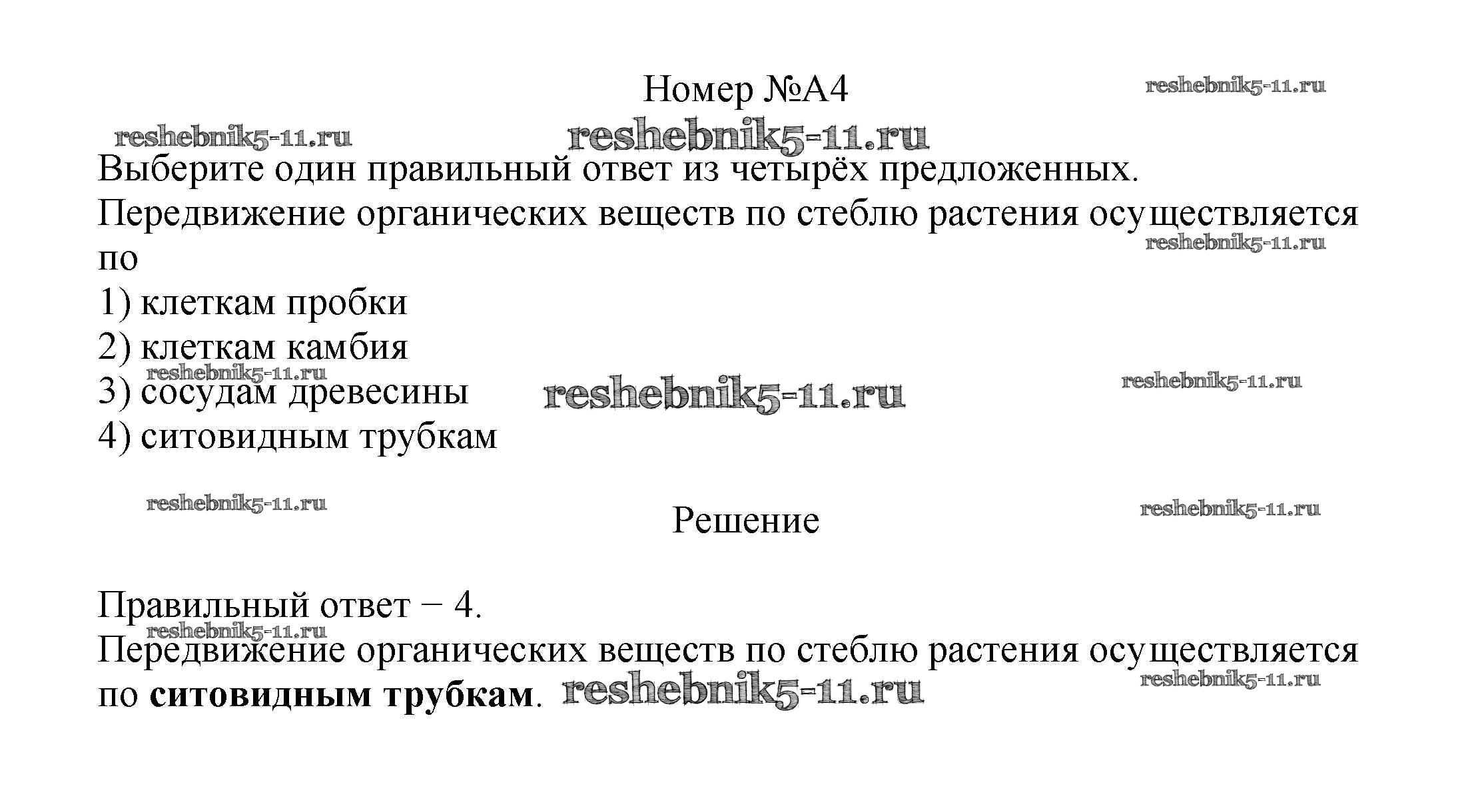 Готовая домашняя работа с ответами по Биологии за 6 класс Пасечник Рабочая тетрадь УМК Дрофа 2017 ФГОС - Задания части A 4