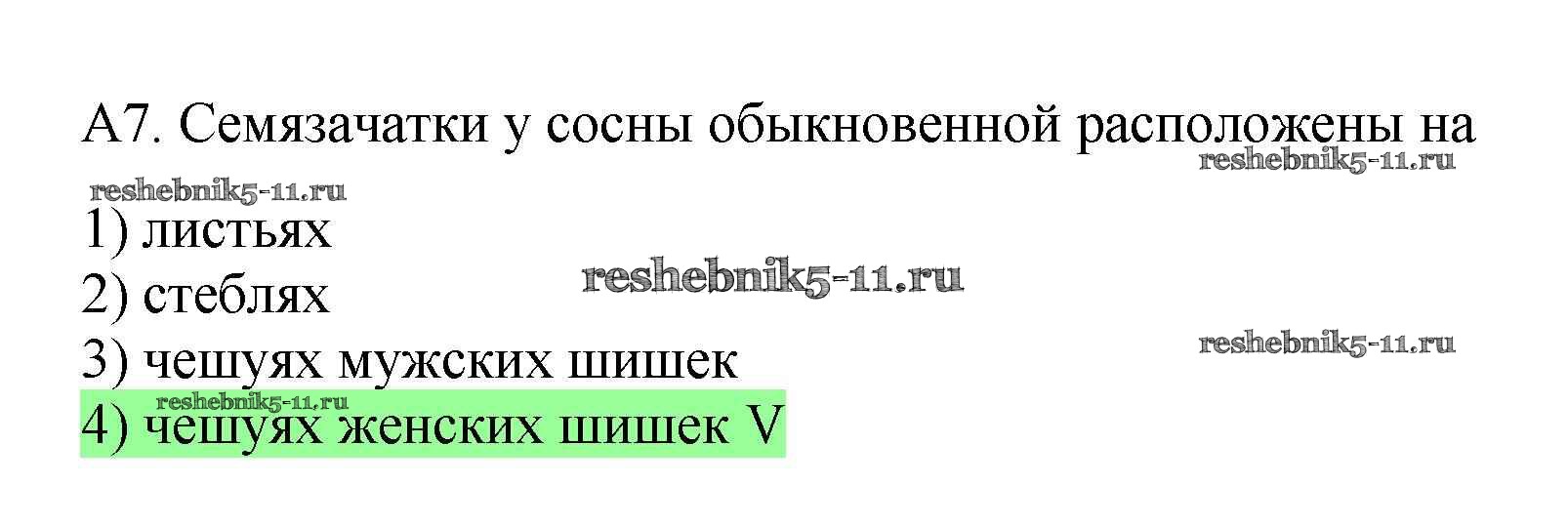Готовая домашняя работа с ответами по Биологии за 6 класс Пасечник Рабочая тетрадь УМК Дрофа 2017 ФГОС - Задания части A 7