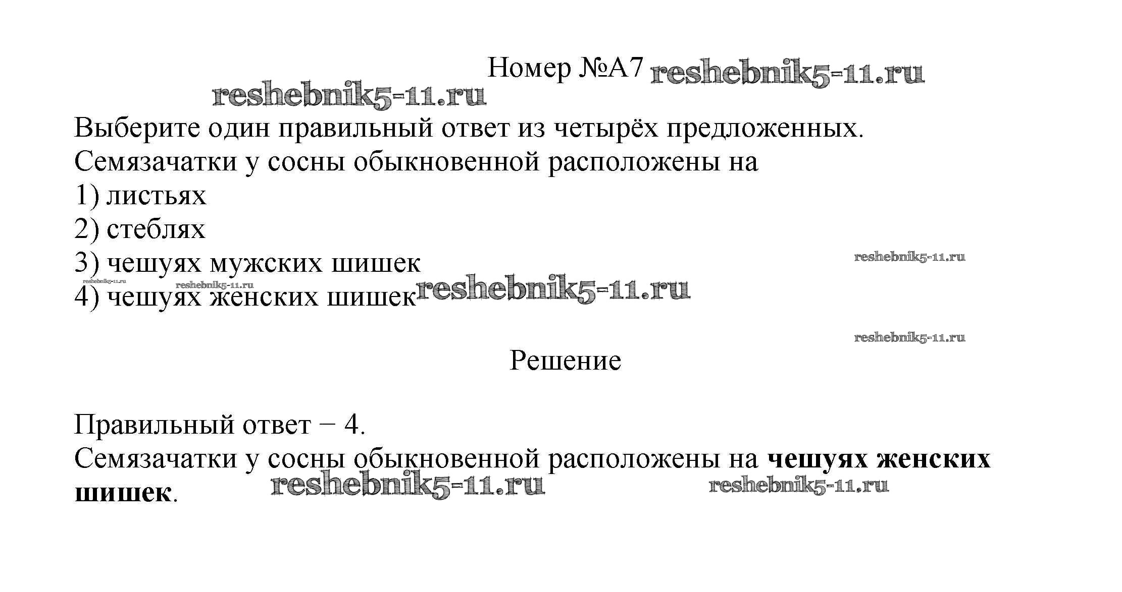Биология за 6 класс Пасечник Рабочая тетрадь УМК Дрофа задания части A 7