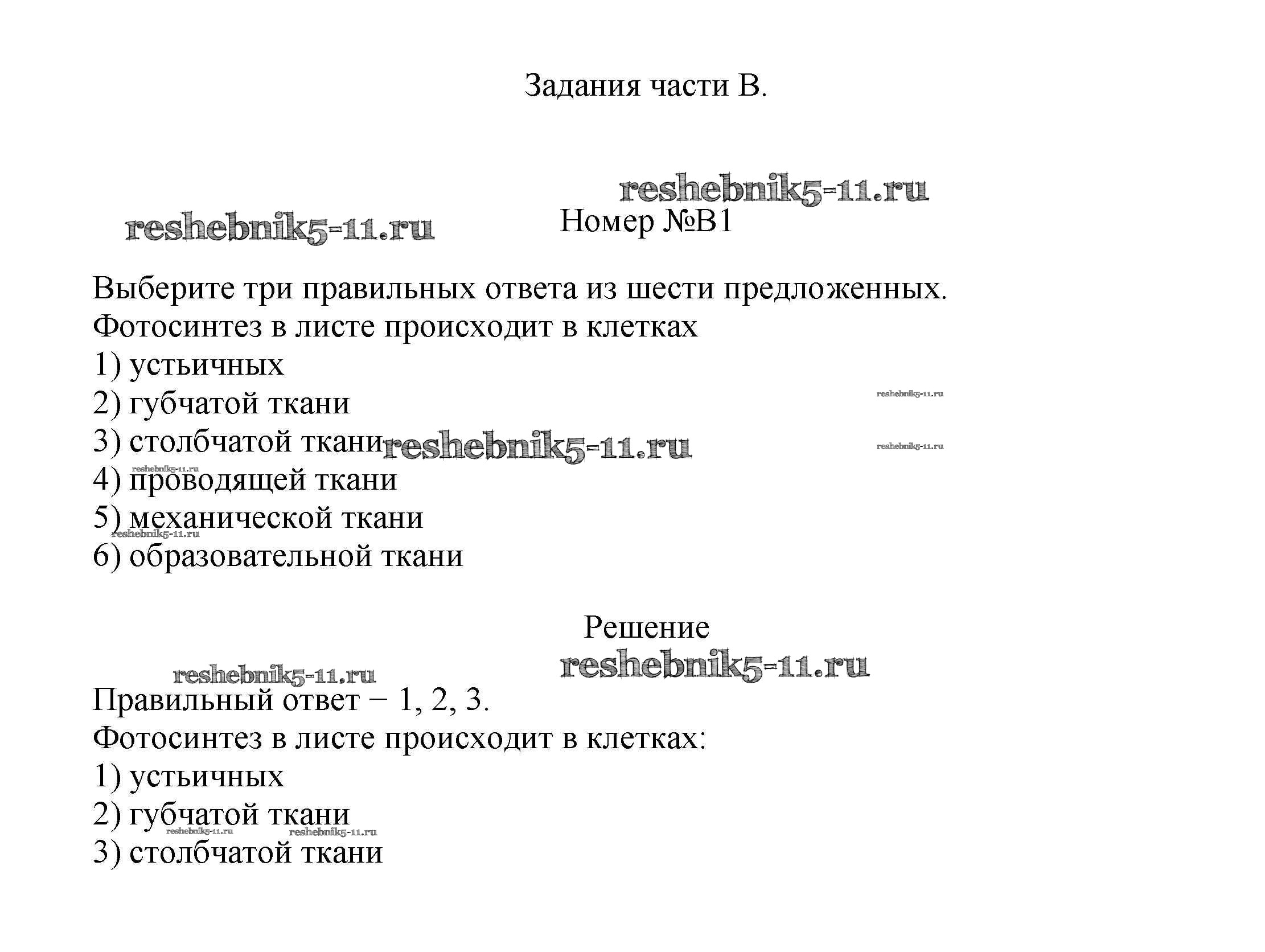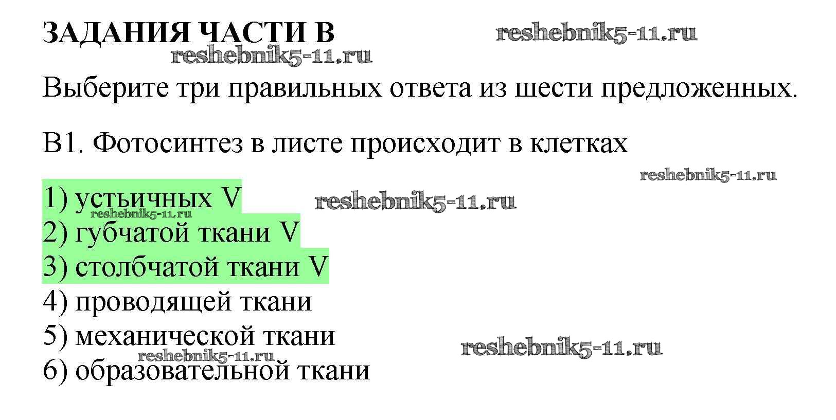 Биология за 6 класс Пасечник Рабочая тетрадь УМК Дрофа задания части B 1