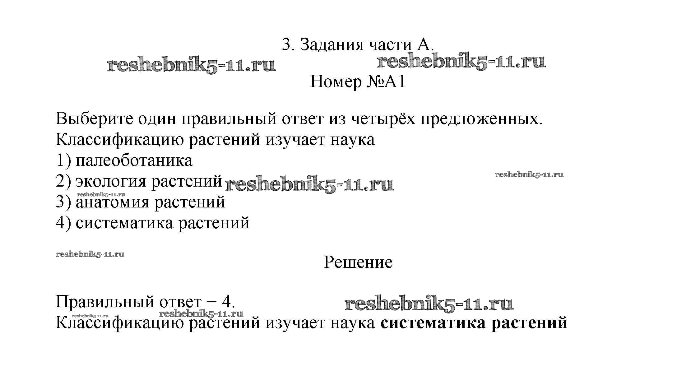 Решебник №1 / тренировочные задания / классификации растений / задания части A / 1