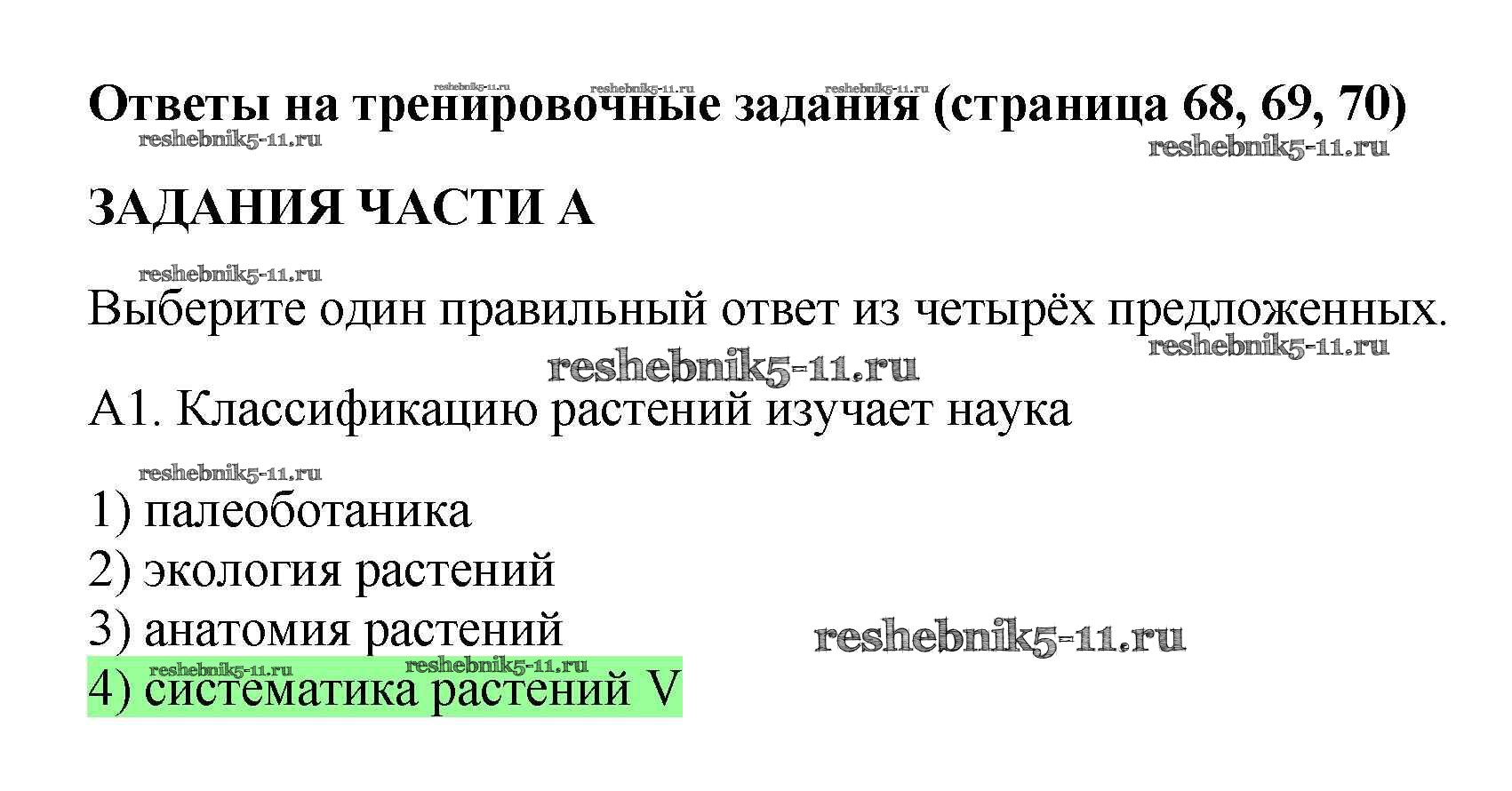 Решебник №4 / тренировочные задания / классификации растений / задания части A / 1
