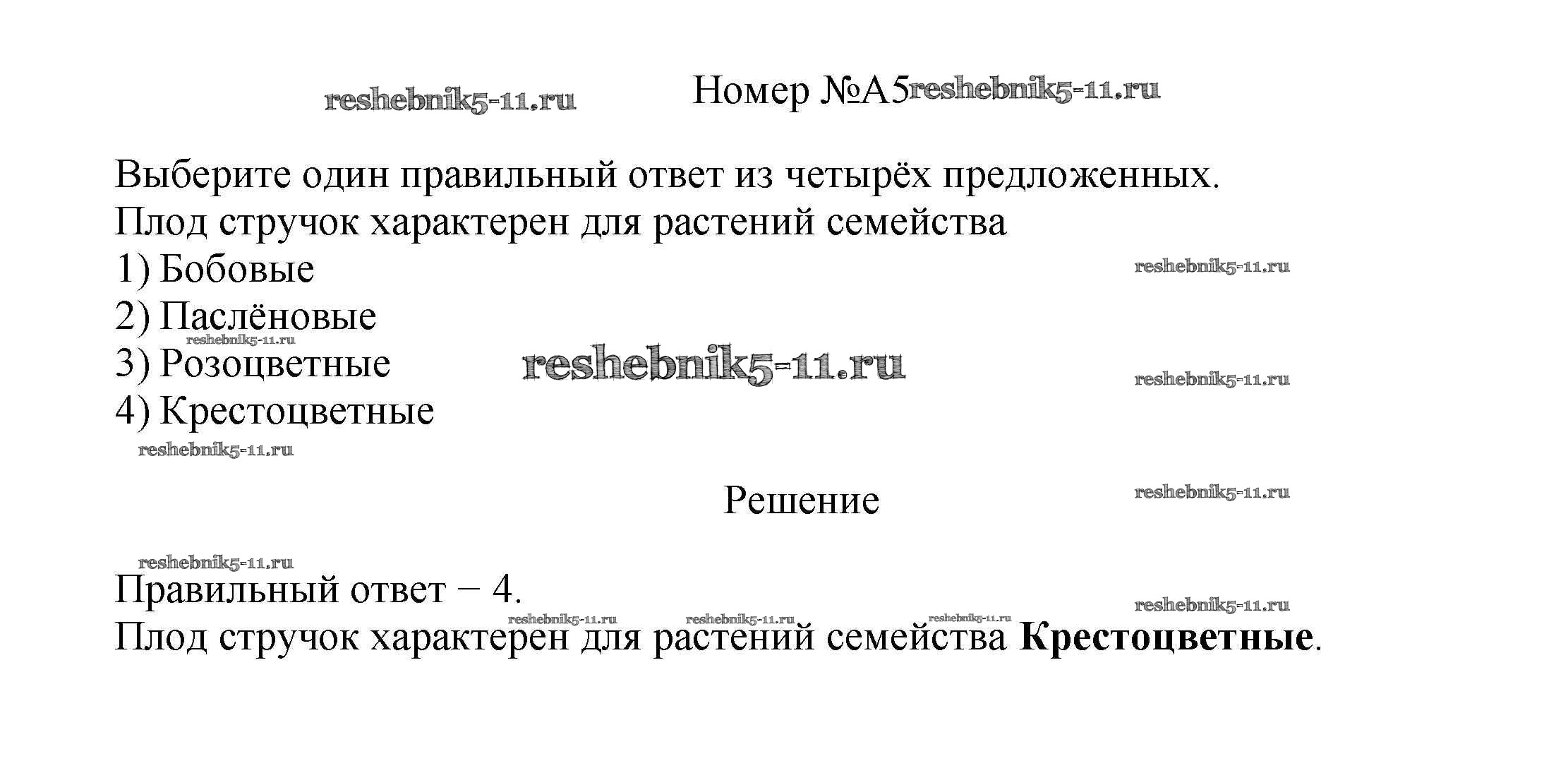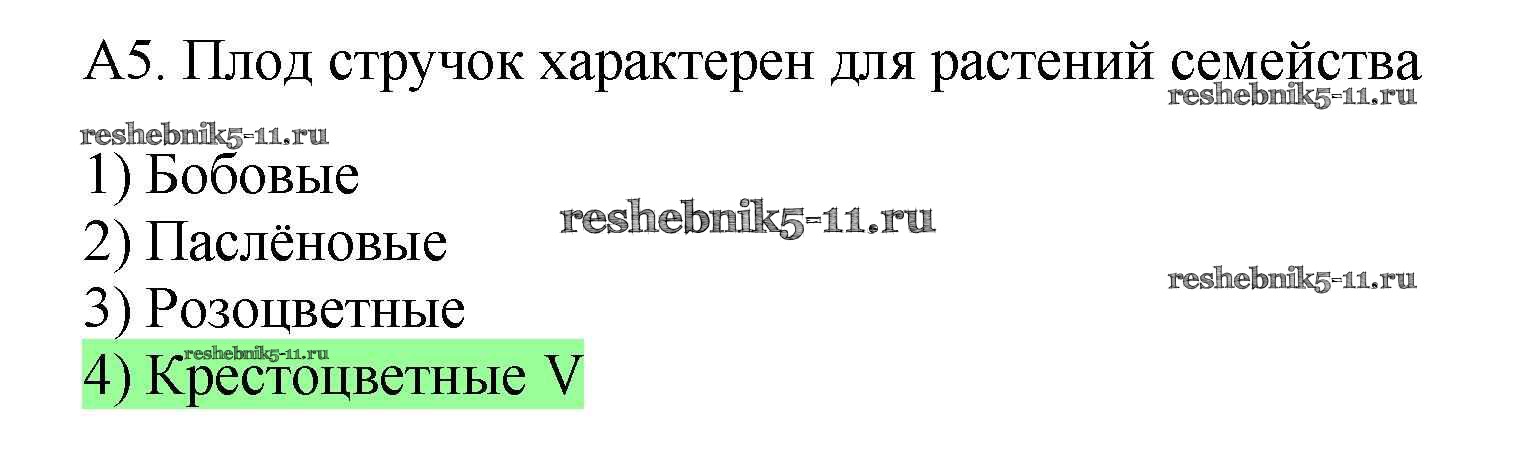 Готовая домашняя работа с ответами по Биологии за 6 класс Пасечник Рабочая тетрадь УМК Дрофа 2017 ФГОС - Задания части A 5