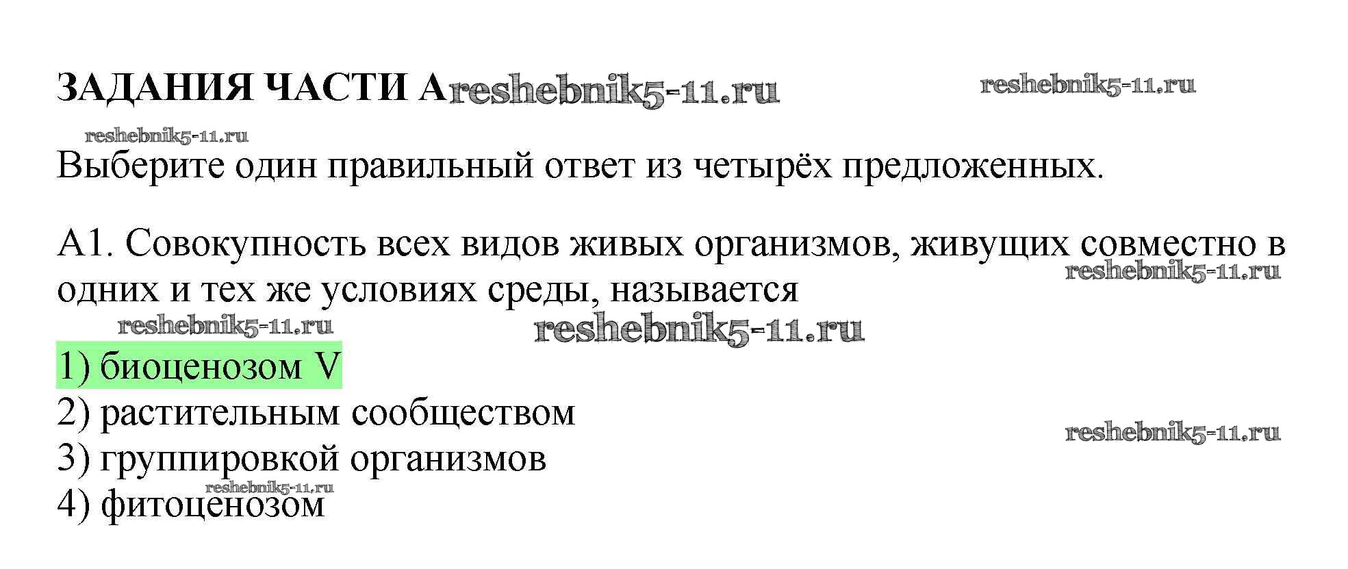 Решебник №1 / тренировочные задания / природные сообщества / задания части A / 1