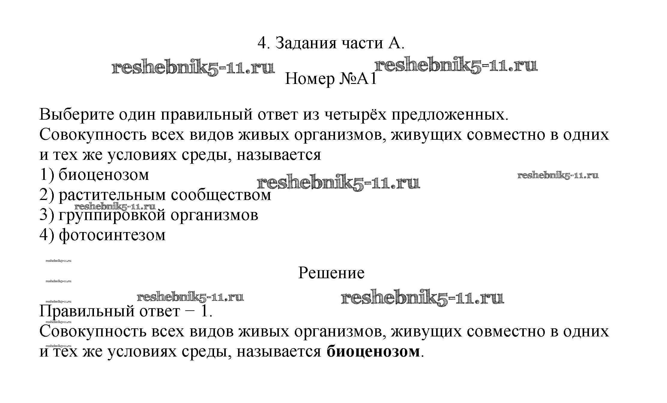Решебник №4 / тренировочные задания / природные сообщества / задания части A / 1