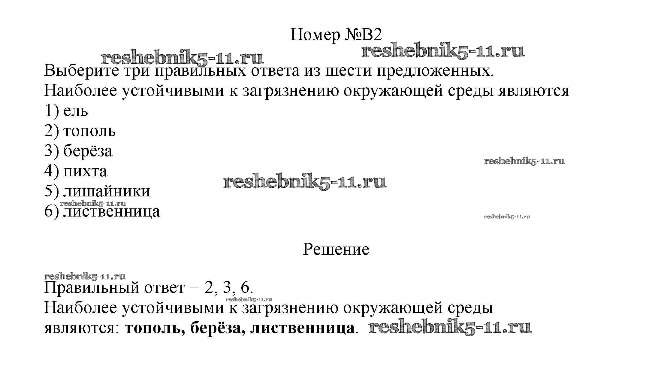 Биология за 6 класс Пасечник Рабочая тетрадь УМК Дрофа задания части B 2