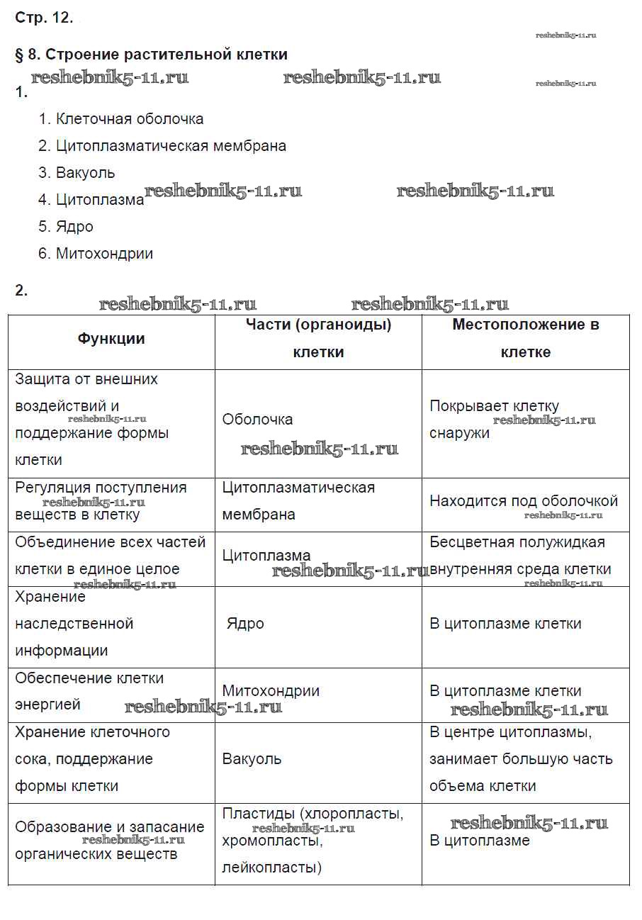 Готовая домашняя работа с ответами по Биологии за 6 класс Исаева, Романова Рабочая тетрадь Инновационная школа Русское слово 2017 ФГОС - Страницы 12
