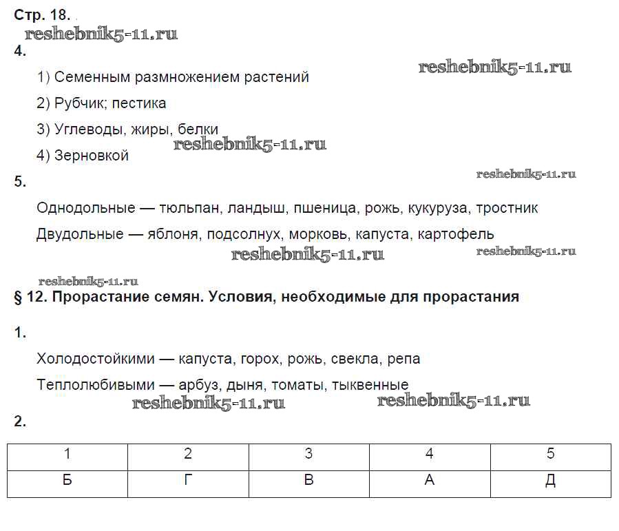 Готовая домашняя работа с ответами по Биологии за 6 класс Исаева, Романова Рабочая тетрадь Инновационная школа Русское слово 2017 ФГОС - Страницы 18