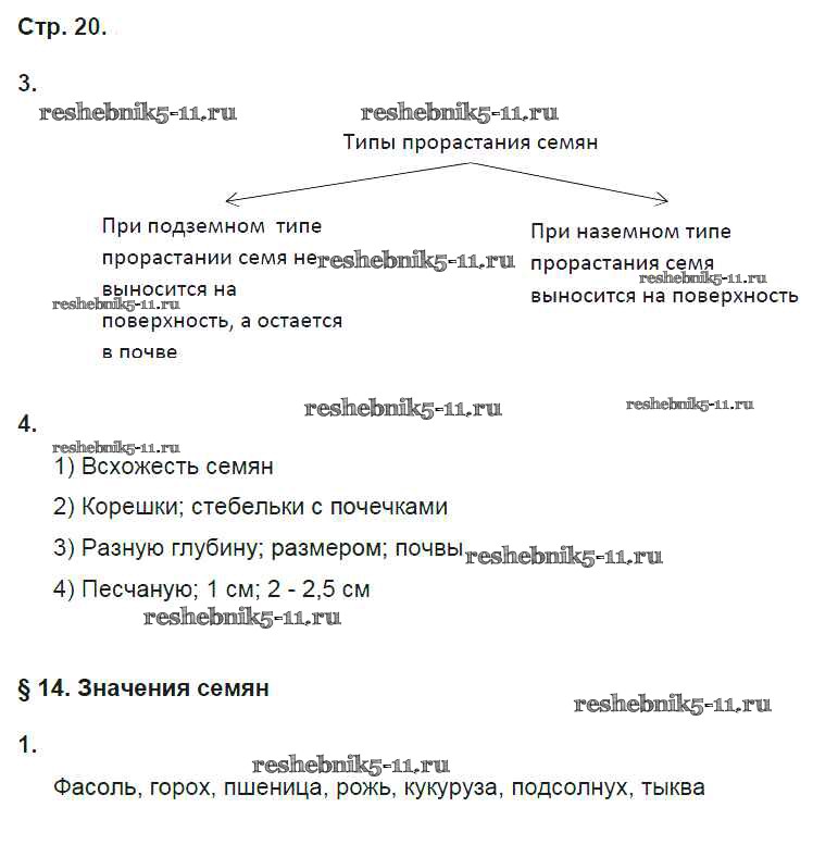 Готовая домашняя работа с ответами по Биологии за 6 класс Исаева, Романова Рабочая тетрадь Инновационная школа Русское слово 2017 ФГОС - Страницы 20